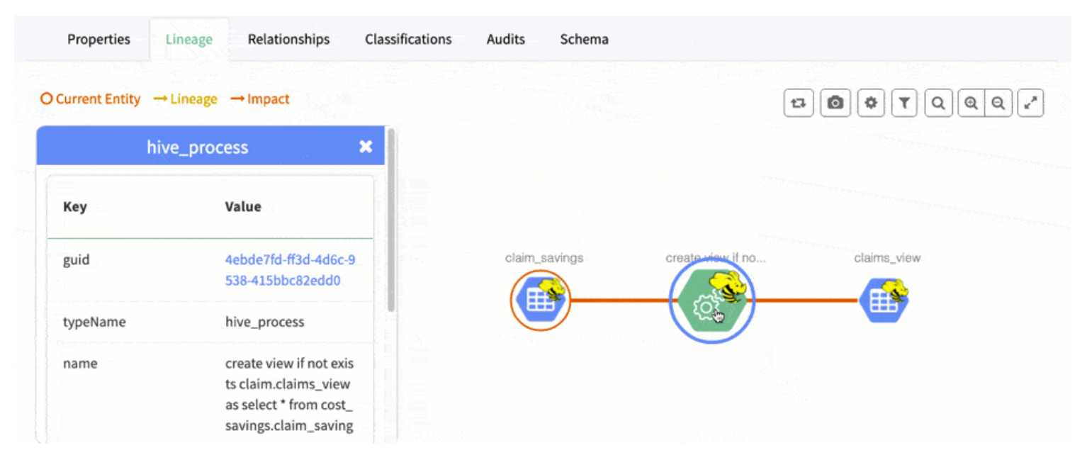 Atlas lineage graphs include lots of detail that you can reveal and configure.
