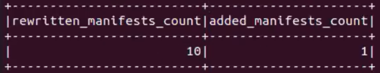 spark.sql("CALL spark_catalog.system.rewrite_manifests('default.sample3')").show();