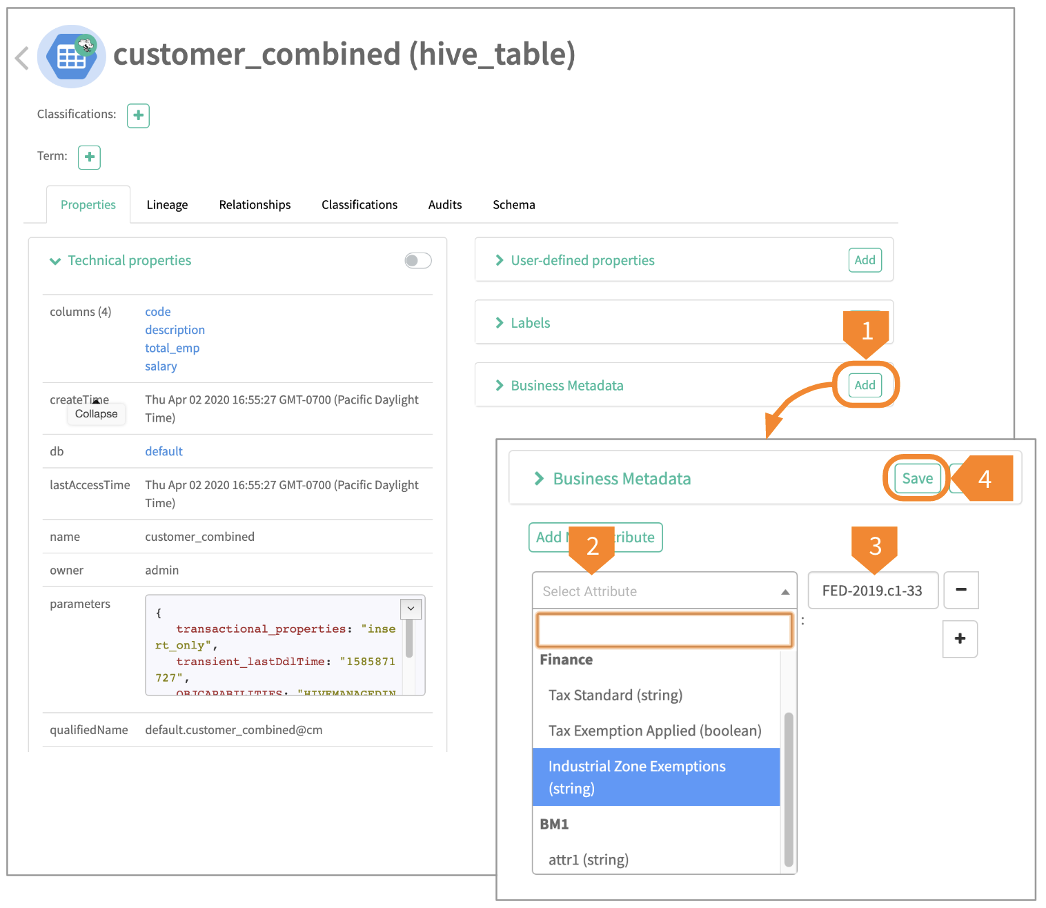 - Select the Business Metadata collection and attribute from the drop-down menu.