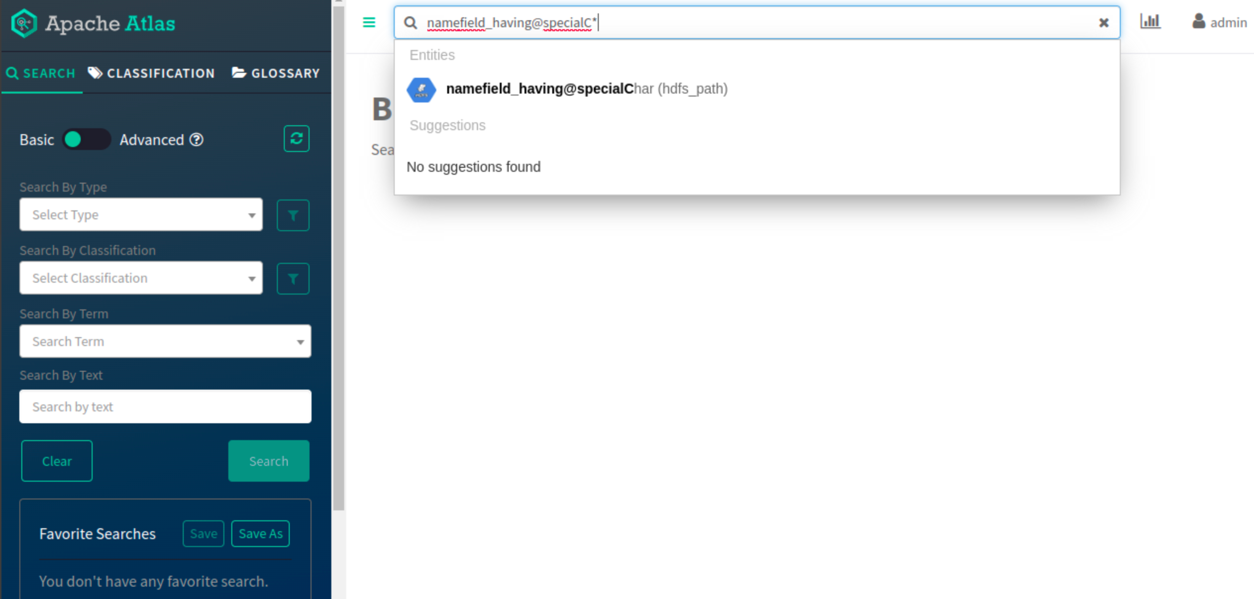 For example: While searching for string with qualifiedName = finance department@axis, user has to search like finance department or finance\ department@axis