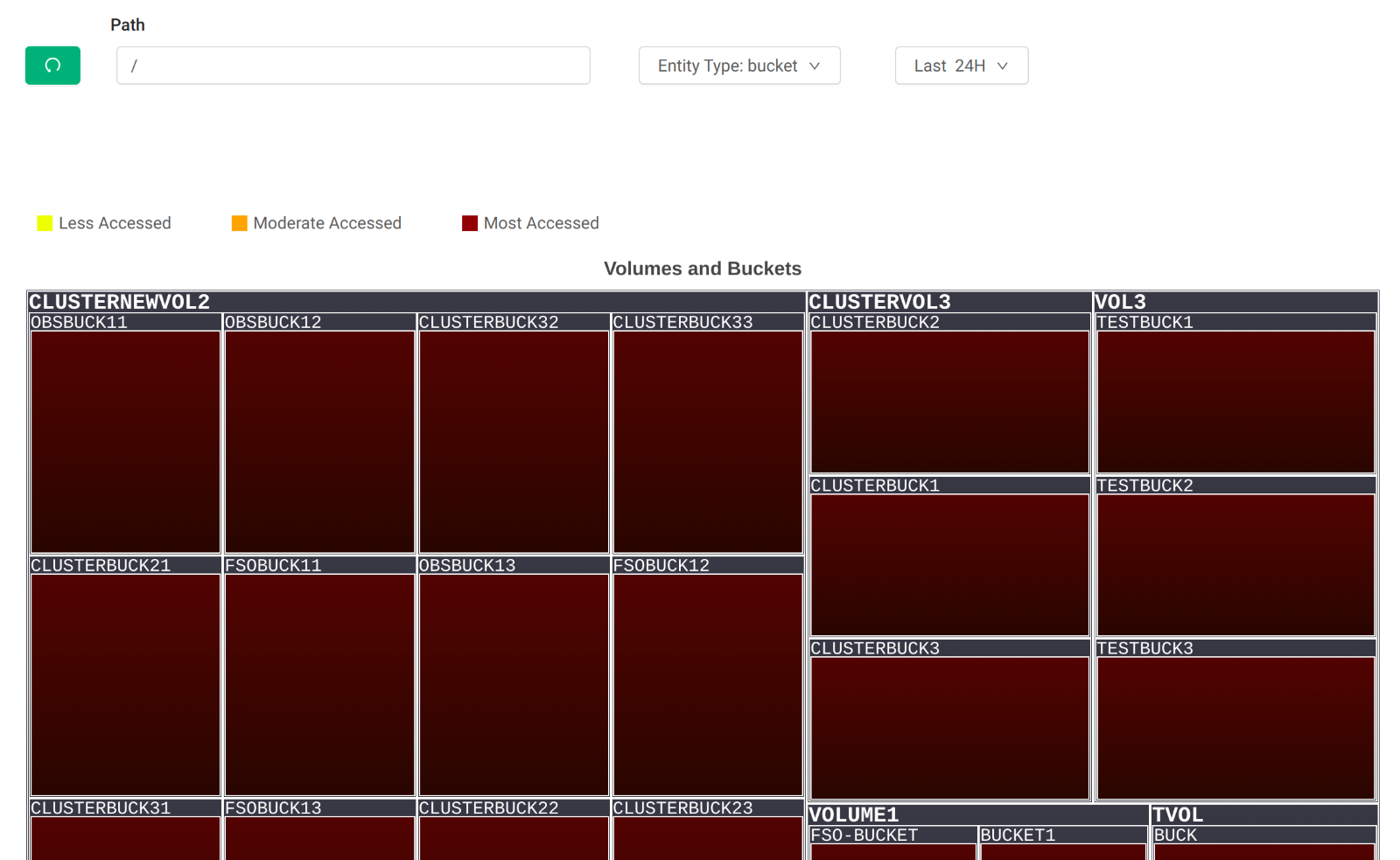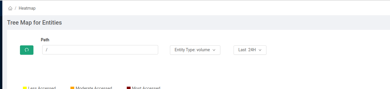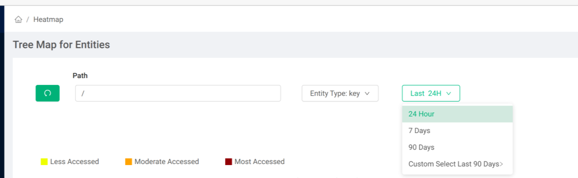Heatmap representation is available based on the last 24 hours, 7 Days, and 90 Days read access metadata or based on read access metadata for any custom date < 90 days. The default value is 24 hours.