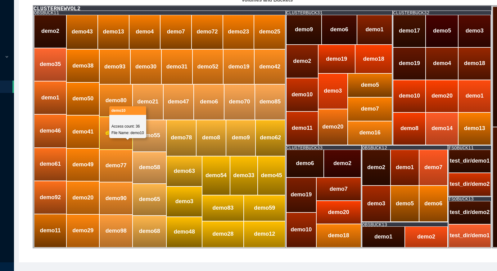 When you hover over an entity in the heatmap, a tooltip is displayed. Entity information like Access count, file name and Max Access Count is displayed.