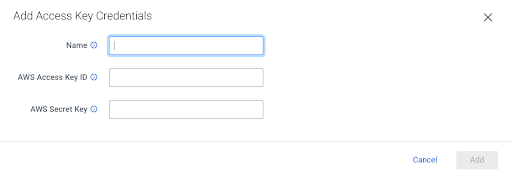 Navigate to Administration > External Accounts > AWS Credentials > Add Access Key Credentials.