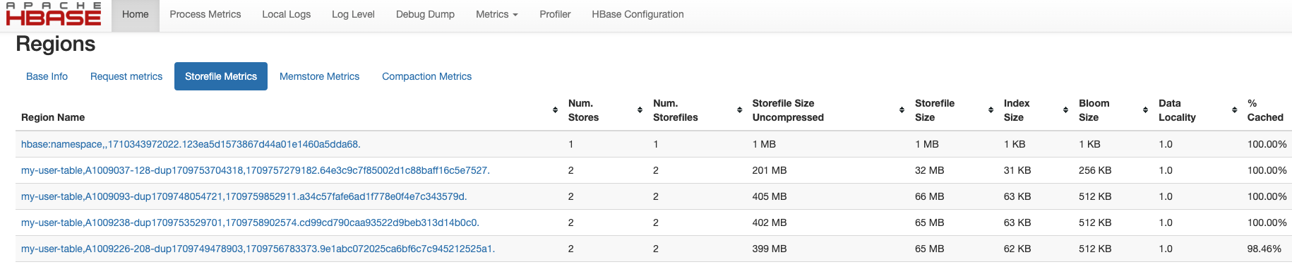 HBase shows cached percentage for region data on RegionServer UI