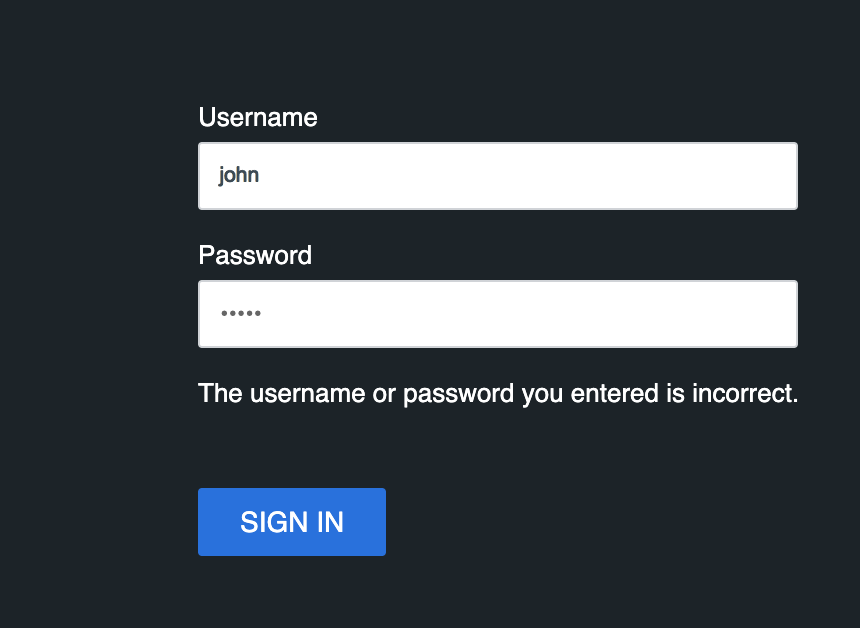 Figure 1. Knox Gateway UI: Incorrect username or password