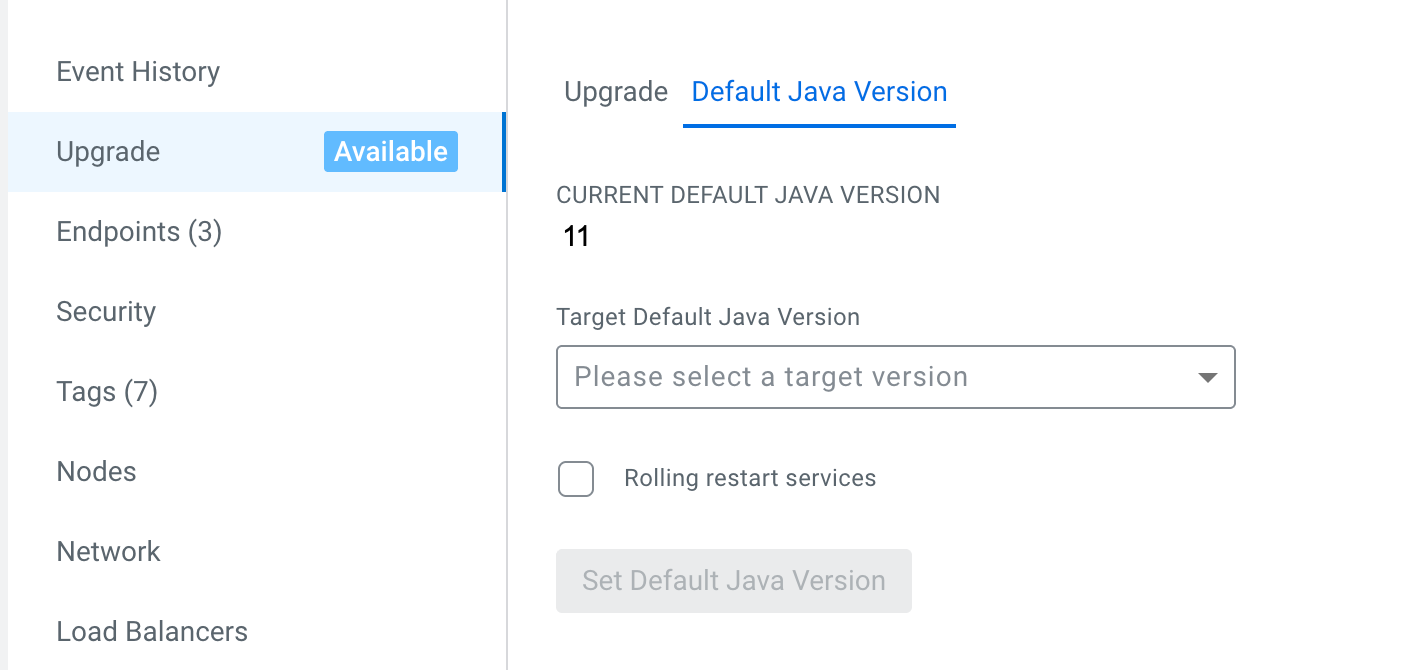 cdp datahub set-default-java-version --cluster-crn [***CRN***] --java-version 8