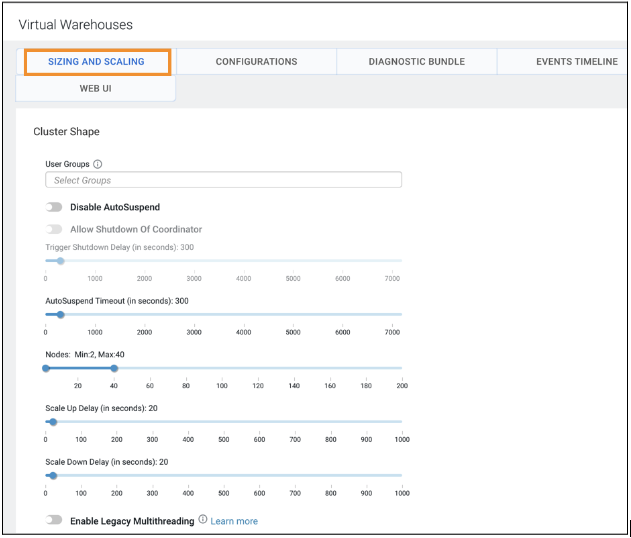 Depending on the size and the complexity of your queries you can select the number of executor nodes that are needed to run a typical query in your workloads. For more information on the executor groups and recommendations on sizing your virtual warehouse to handle queries that must be run in your workloads concurrently, see Impala auto-scaling on public clouds.