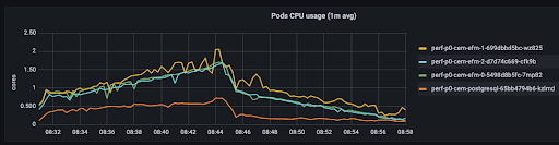 Learn about the estimated latencies and CPU usage when agents register to the Edge Flow Manager with PostgreSQL used as the relational database.