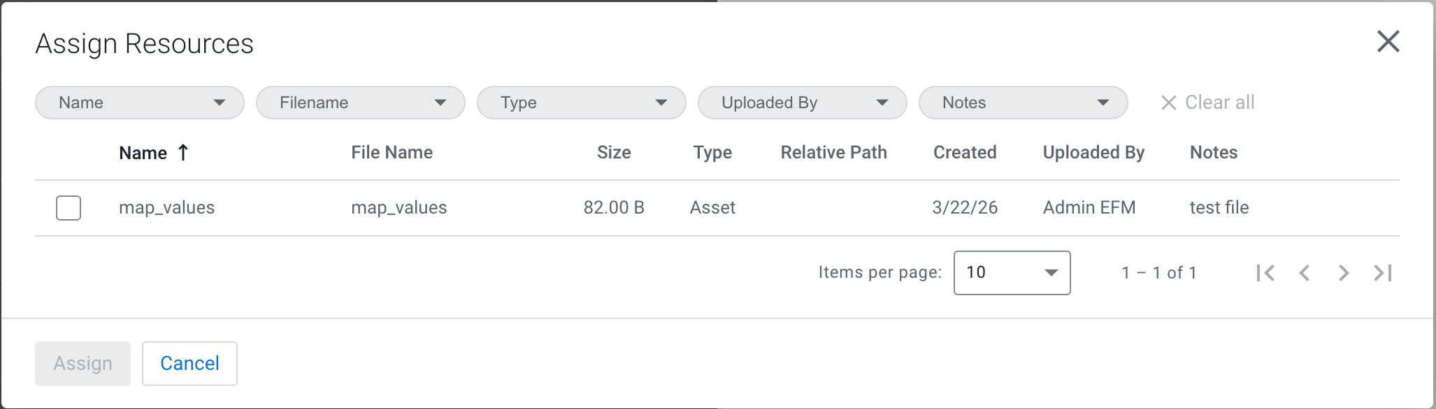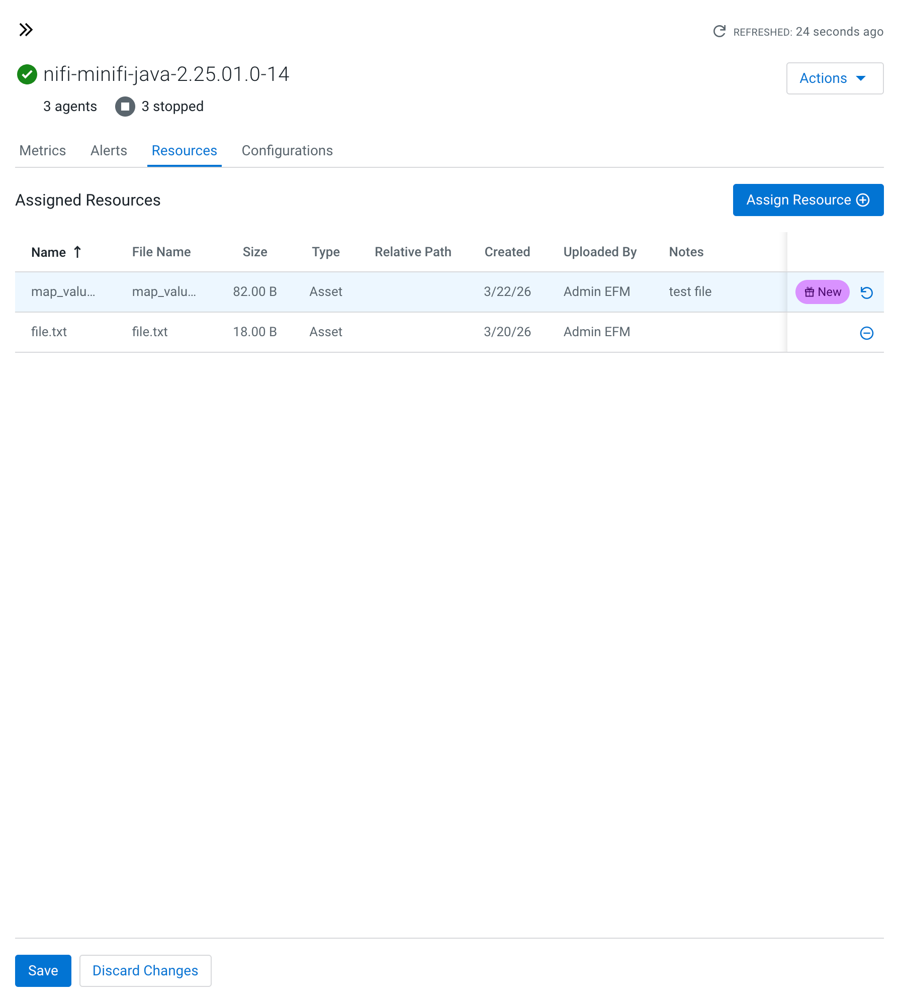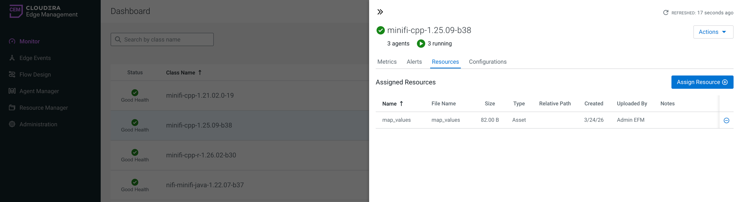 Assigned resources are synchronized to all agents in the class and become available for use in flows and processor configurations.
