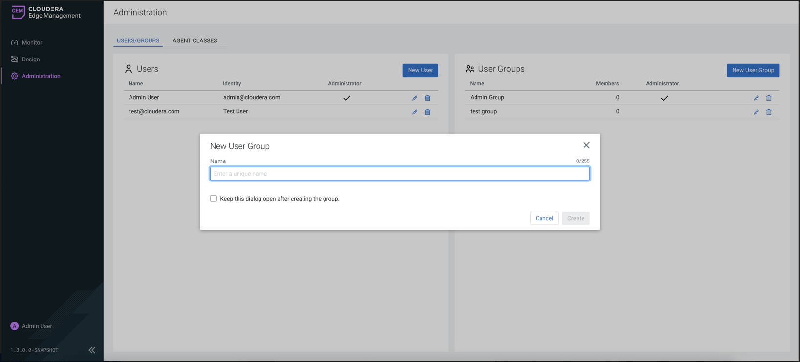 2. Click New User Group, in the Users/Groups tab to create a new group.