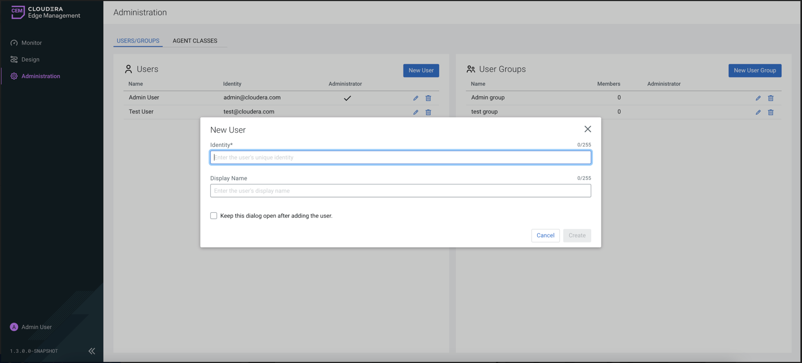 Users/Groups tab to create a new user.