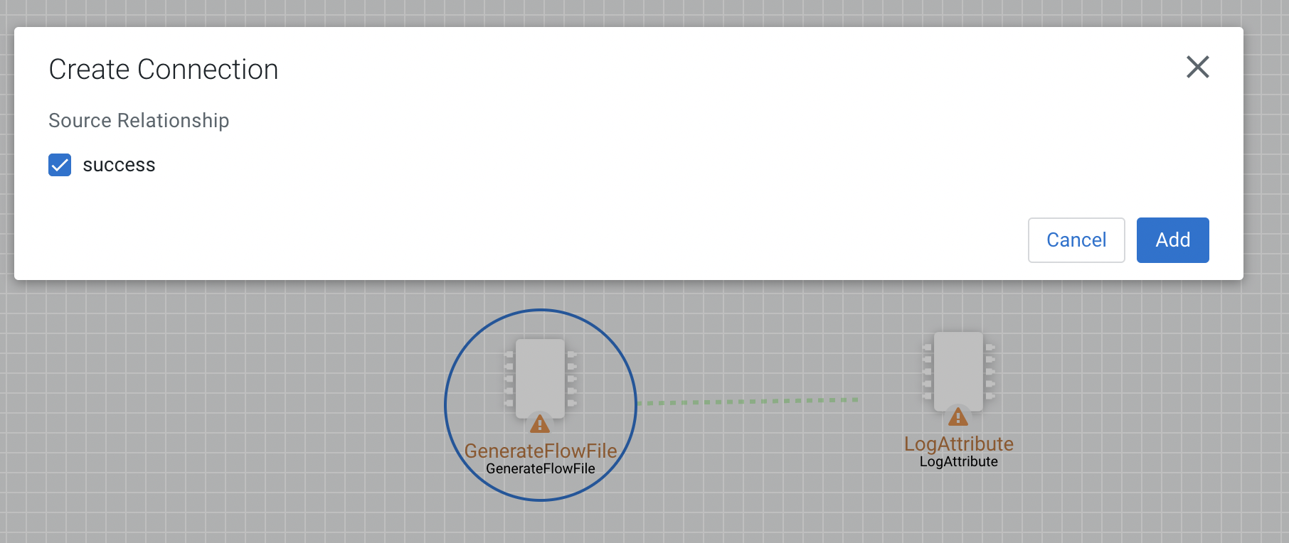 After you add processors and other components to the canvas of the Edge Flow Manager UI and configure them, the next step is to connect them
