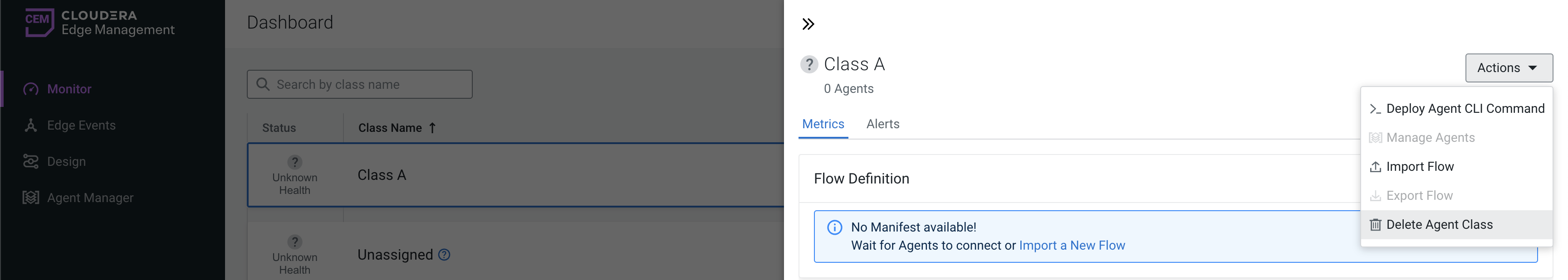Learn how you can delete agent classes on the Edge Flow Manager UI.