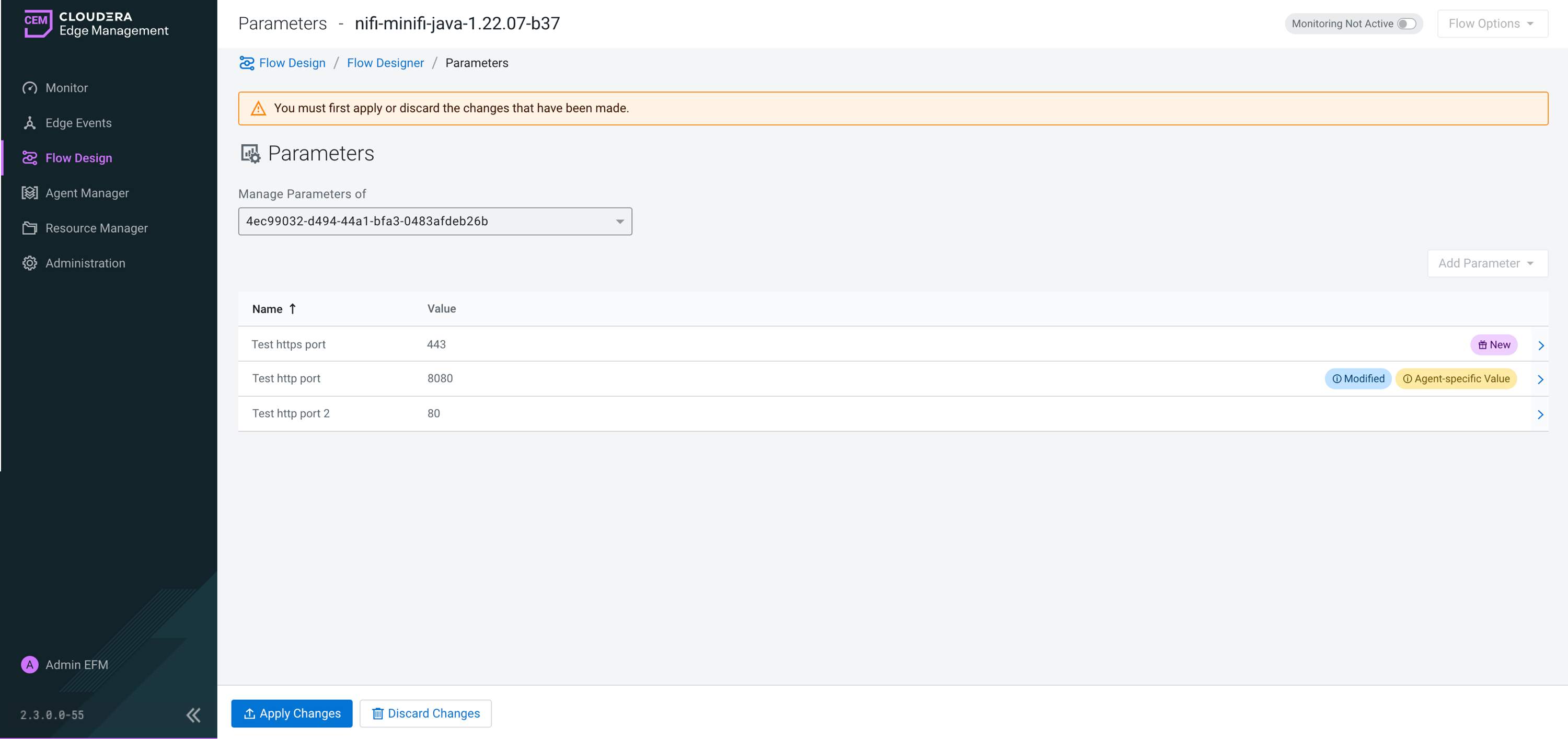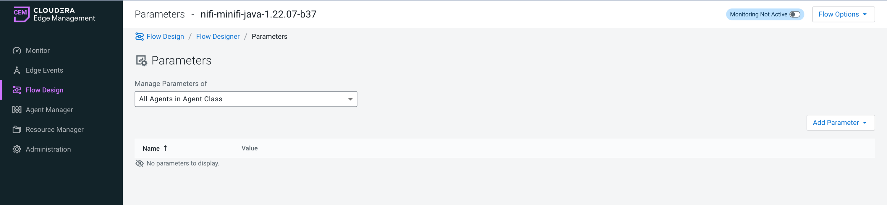 Managing agent parameters using the UI in Cloudera Edge Management