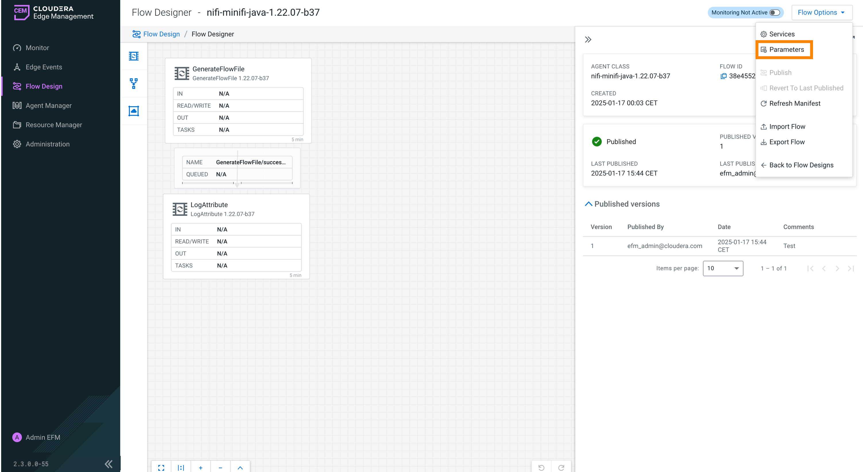 - Navigate to the Flow Designer interface for a flow in Cloudera Edge Management.