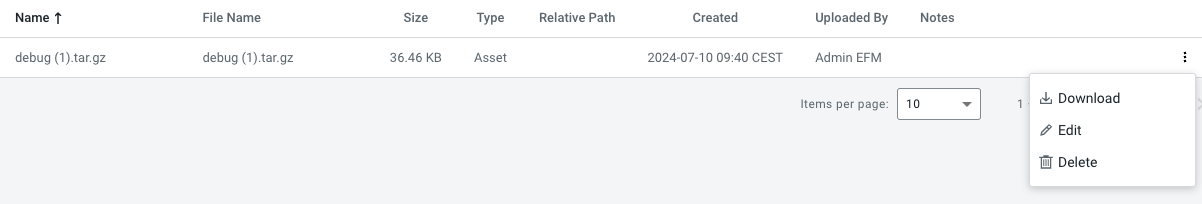 You can upload assets or extensions. Agents will start to download the new resources after their next heartbeat. If a download fails, the agent will retry the download in the next heartbeat iteration. On the agent, assets are downloaded to the asset directory, and extensions are downloaded to the extensions directory within the agent's base path.