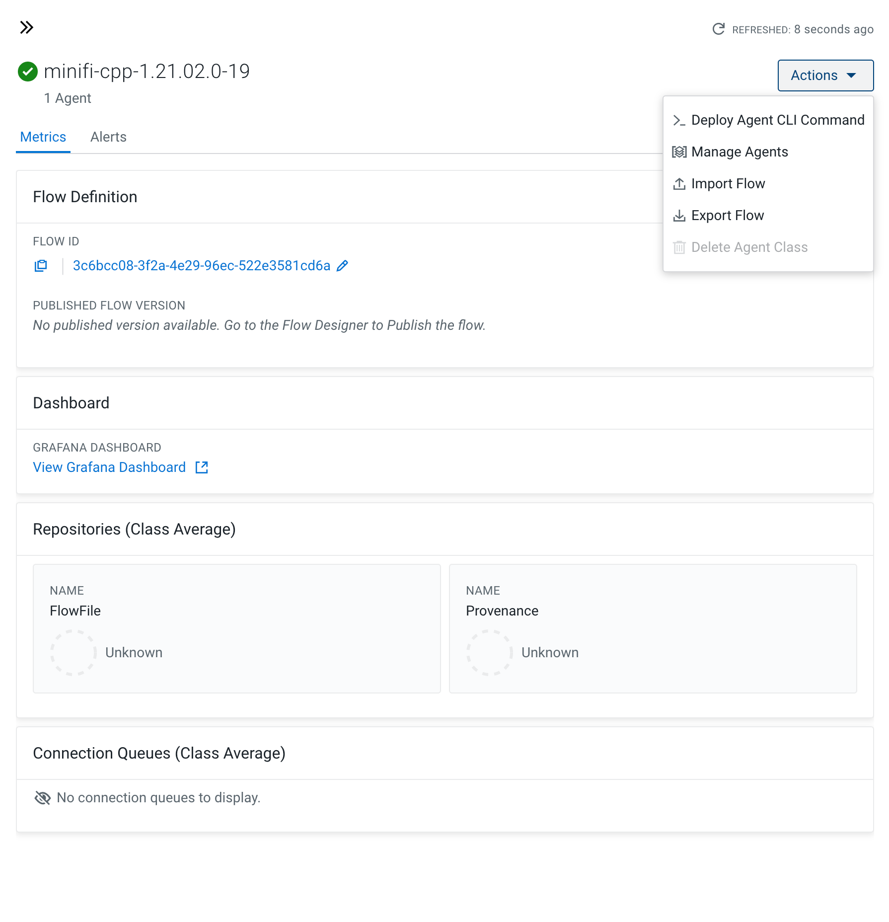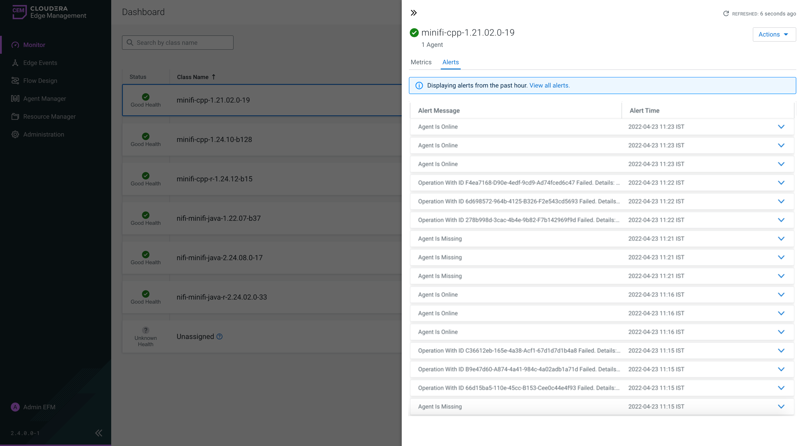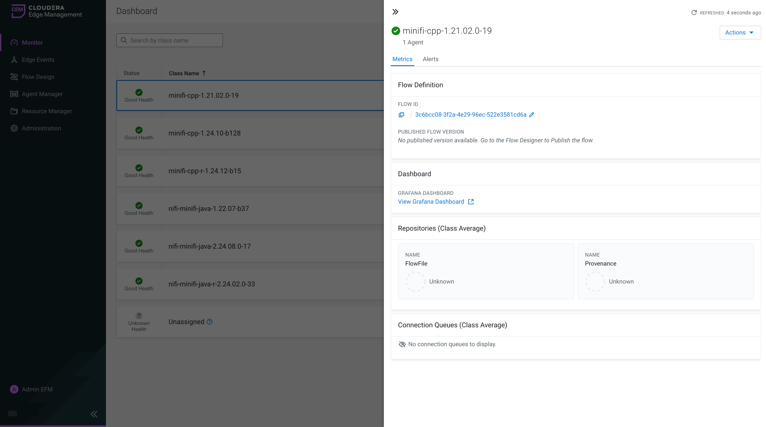 efm.monitor.maxHeartbeatInterval. - Unknown Health: The agents in the class may not yet be registered, or the heartbeat intervals cannot be determined.
