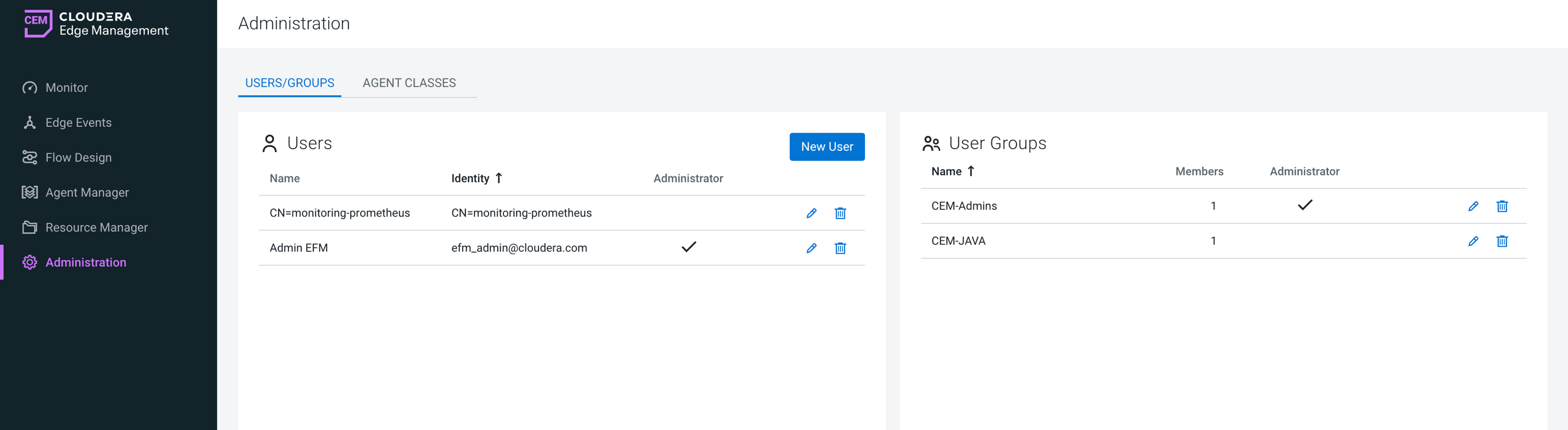Authorization in Cloudera Edge Management is role-based, meaning access is granted based on roles assigned to agent classes. Each role determines the actions a user can perform and the data they can access. These roles must be associated with authenticated users, ensuring secure and role-specific operations. The Administration screen allows you to manage user permissions and define access controls.