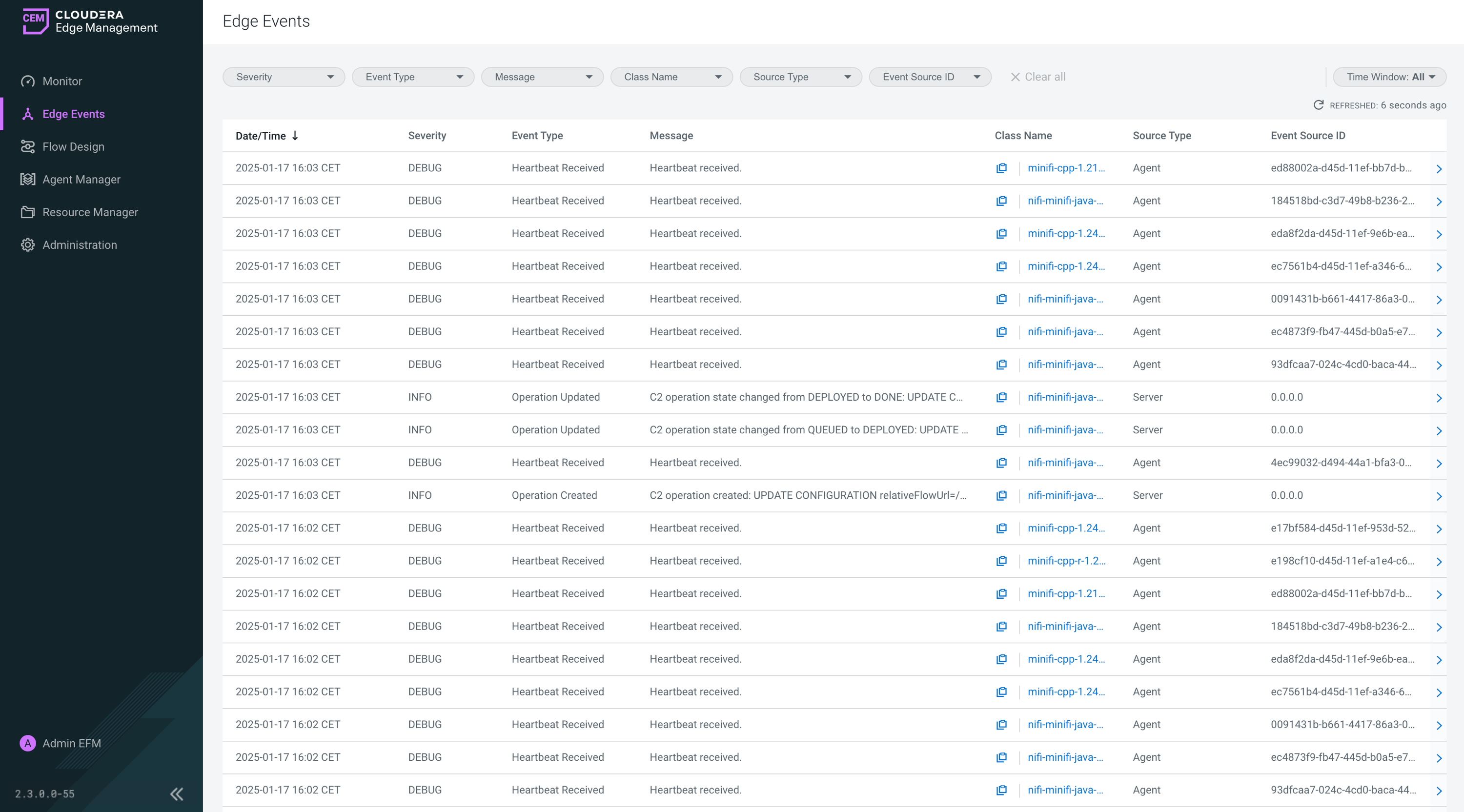 Edge Events allows you to monitor C2 server and agent events in Cloudera Edge Management.