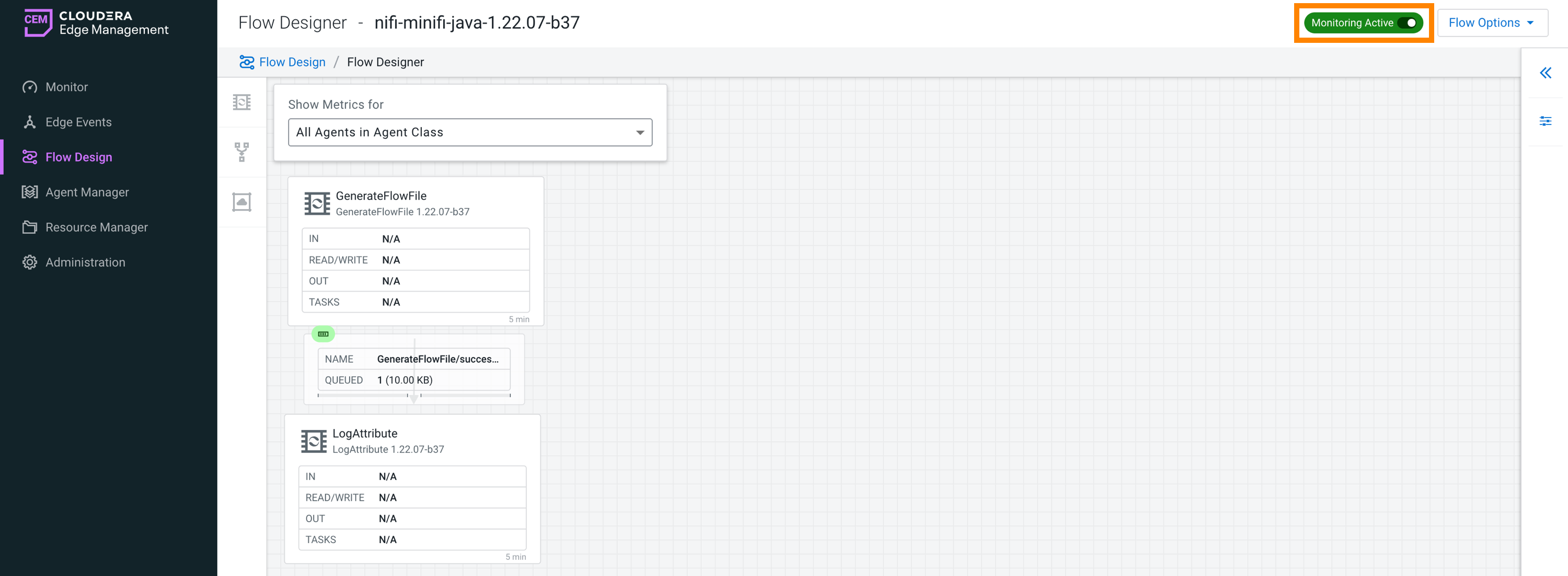 For more information on how to build a dataflow, see Building a dataflow in Cloudera Edge Management.