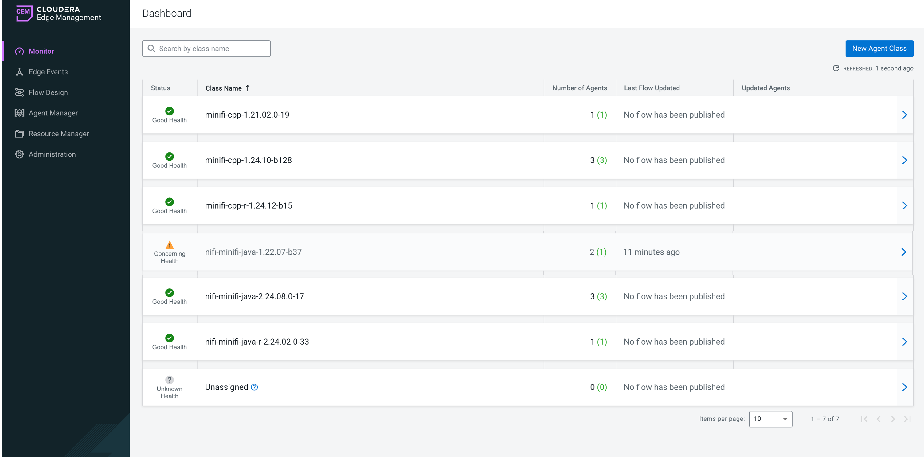 The Agent Manager of Cloudera Edge Management provides a centralized interface to monitor the health and status of agents.