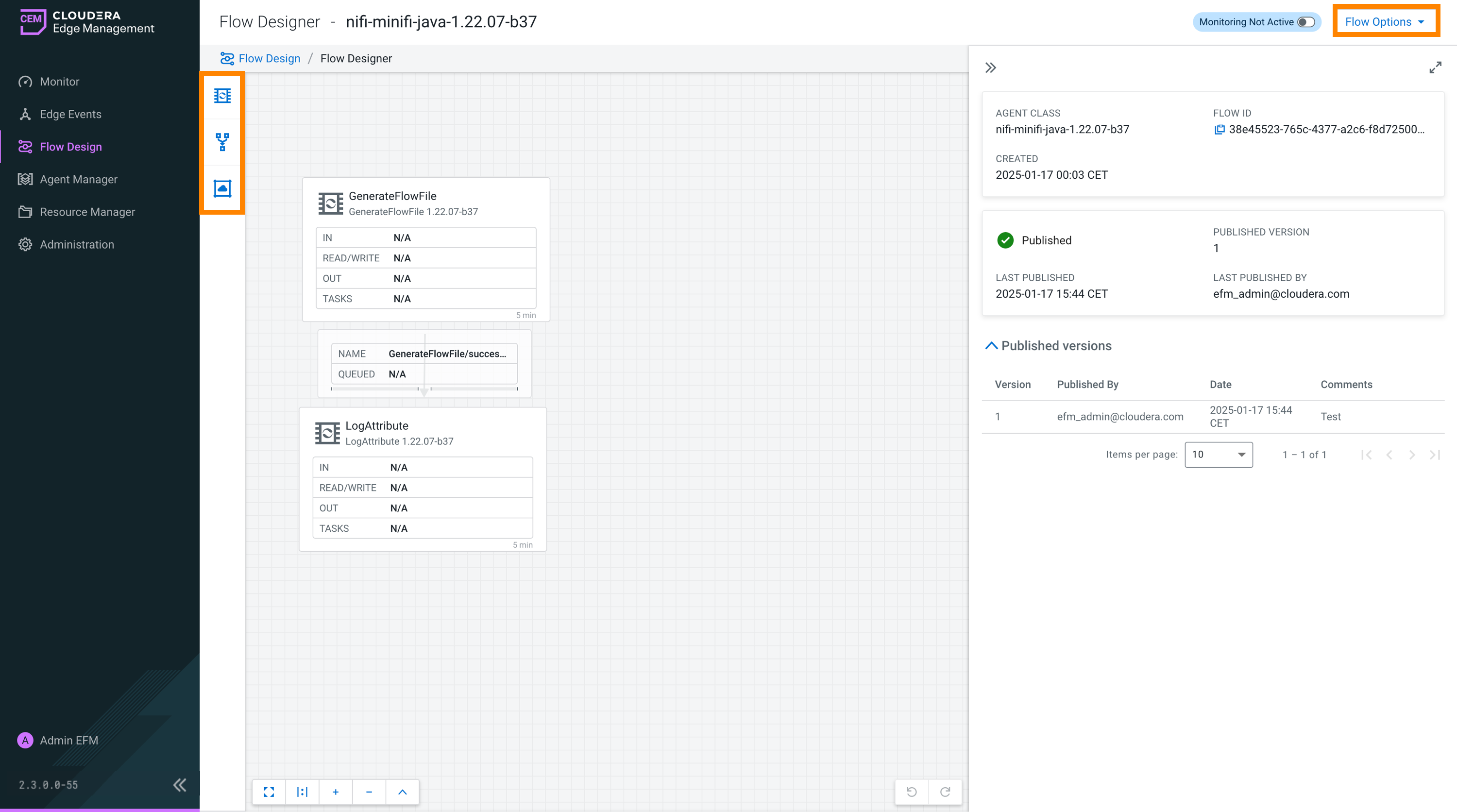 For more information on publishing a dataflow, see Publishing a dataflow in Cloudera Edge Management.