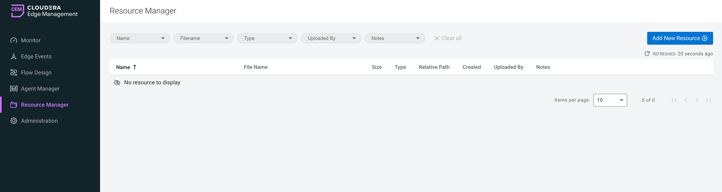 For more information on how to work with resources, see Managing resources in Cloudera Edge Management.