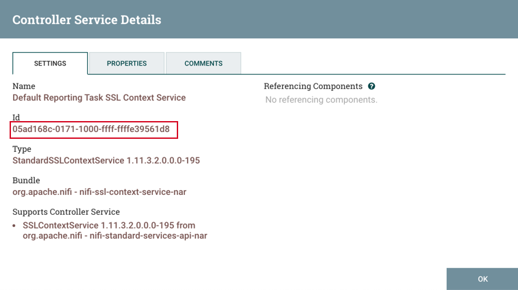 3. To locate the ID of the SSL Context Service: