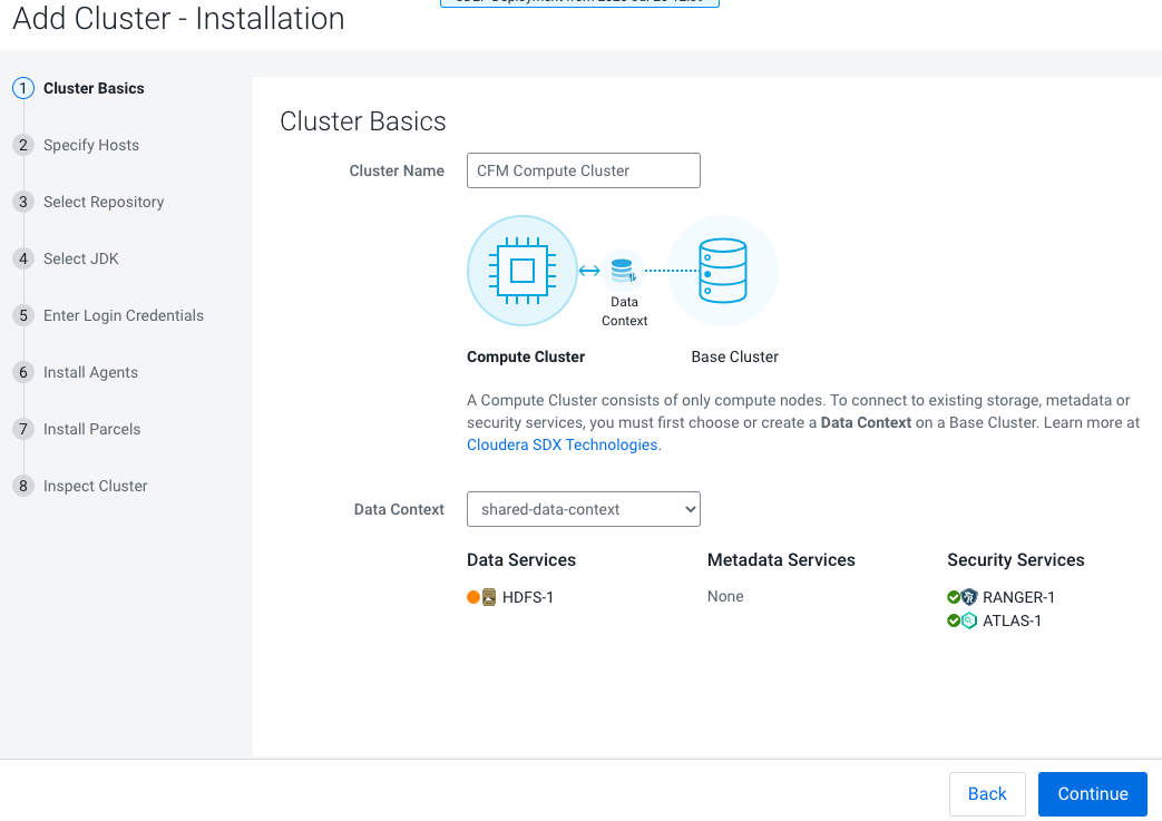 Provides the steps to create a Cloudera Base on premises Compute cluster.