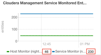 Entities.The number of monitored entities for the Host Monitor and Service Monitor displays at the bottom of the chart. In the following example, the Host Monitor has 46 monitored entities and the Service Monitor has 230 monitored entities.