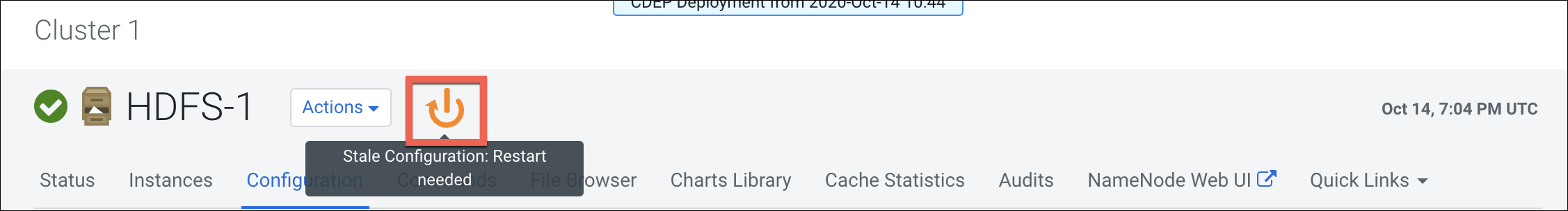 13. Click HDFS Restart.