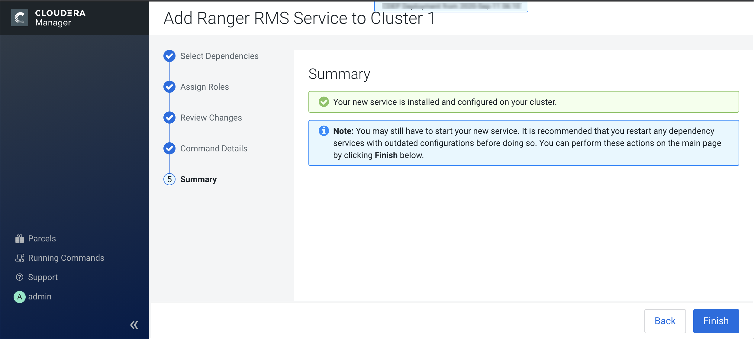 15. On the Restart Stale Services page, select the Re-deploy client configuration option, then click Restart Now.