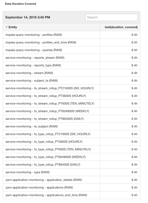 You can vire the Cloudera Manager Service Monitor data storage granularities in Cloudera Manager.