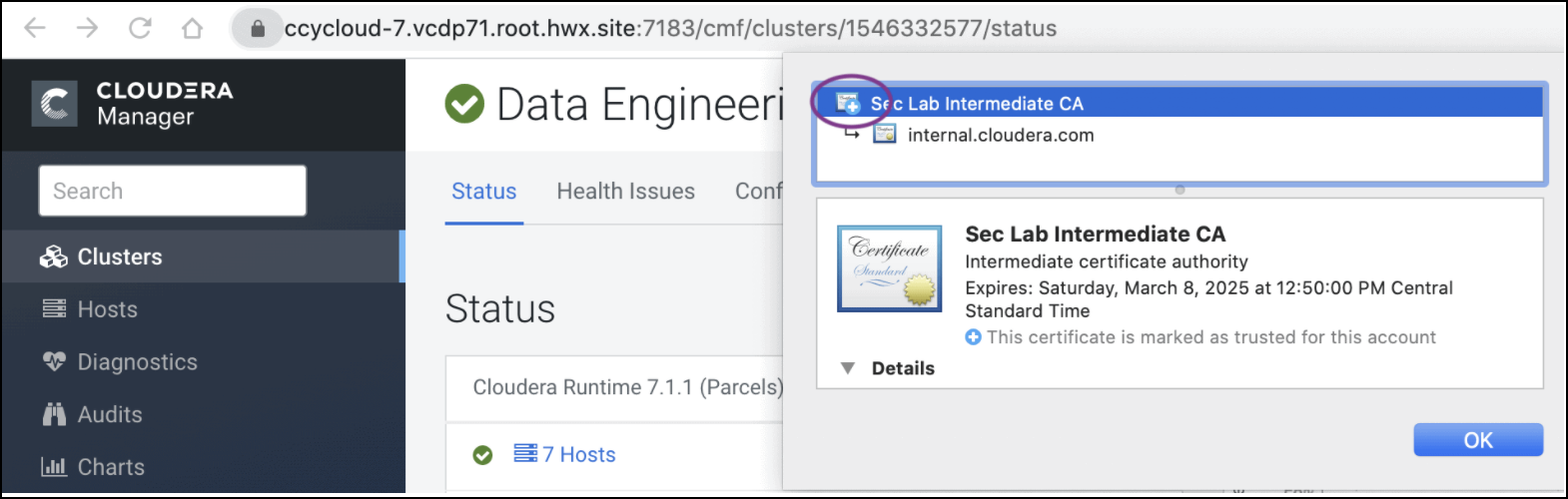 performed to upload the CA signed host certificates to Cloudera Manager.