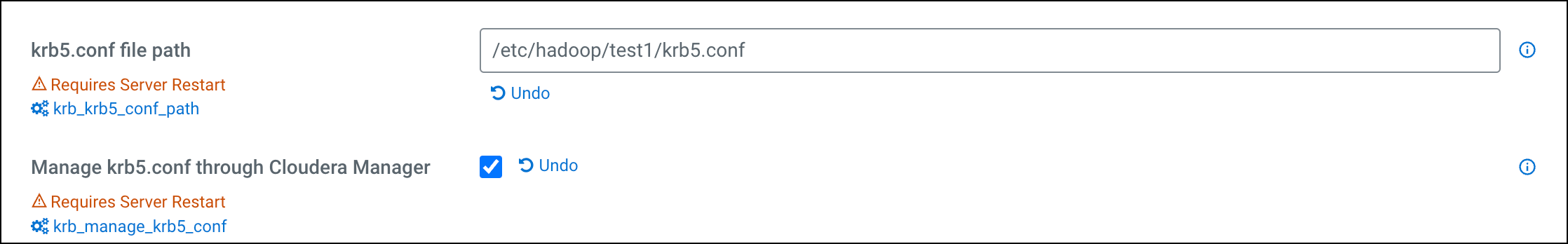 From Cloudera Data Platform 7.1.9 ( Cloudera Manager 7.11.3 ) onwards, you are able to set a custom path for the Kerberos Configuration file, krb5.conf. The valid paths are limited to /etc/hadoop/* or /etc/krb5.conf when Manage krb5.conf through Cloudera Manager setting is enabled in Cloudera Manager; otherwise, any path is acceptable.