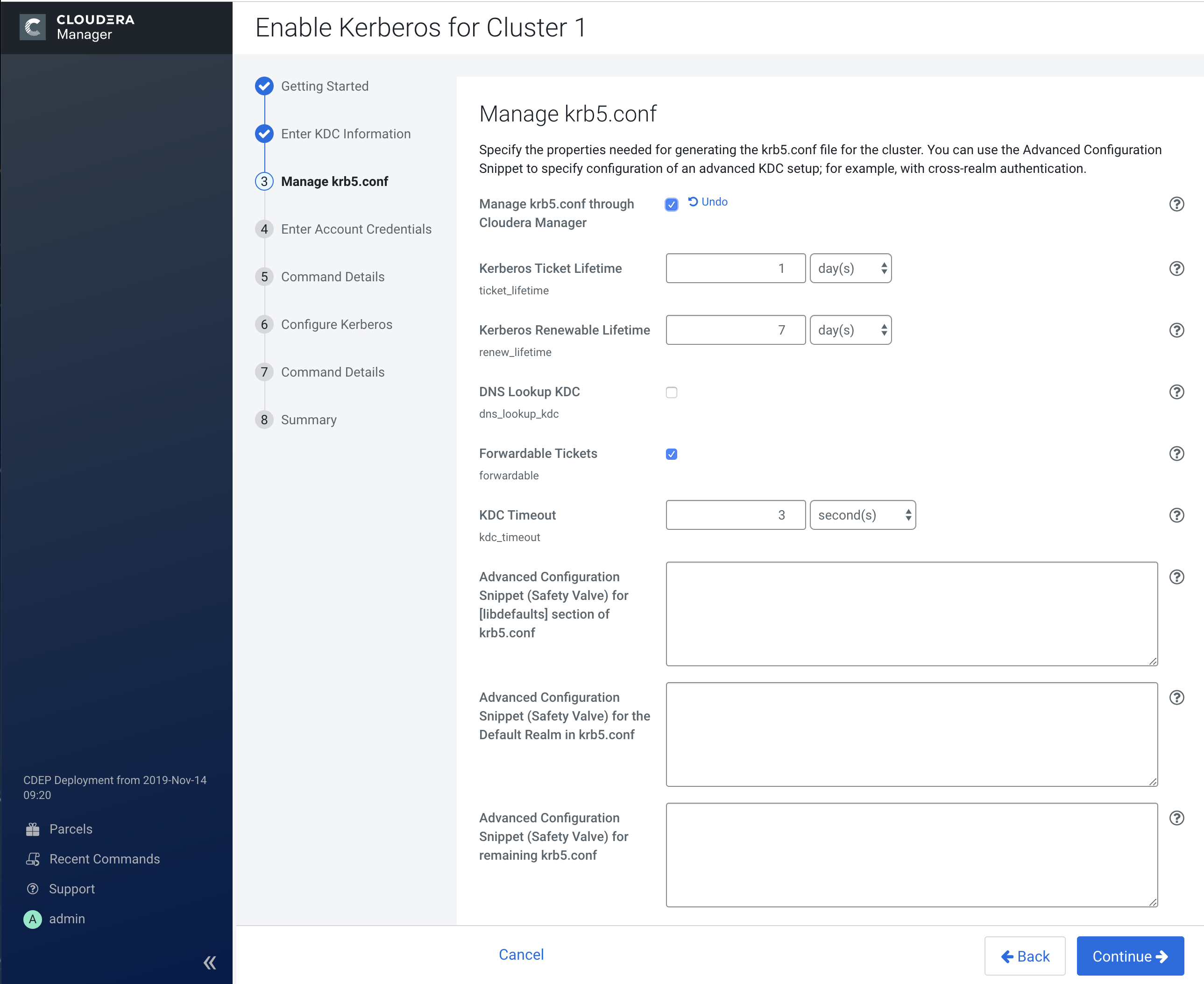 You can use this page to specify whether or not Cloudera Manager deploys and manages the krb5.conf file on your cluster.
