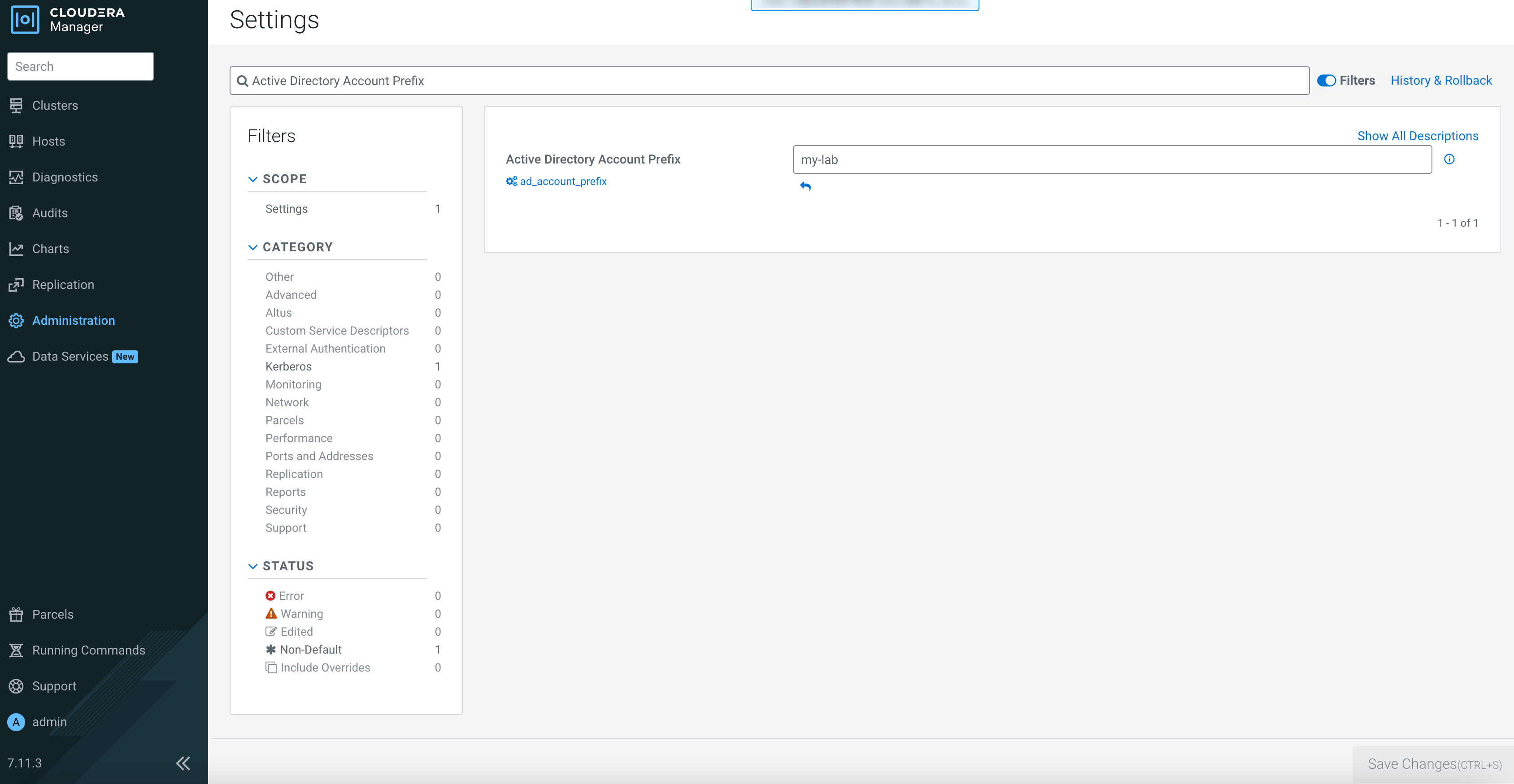 1. In the Cloudera Manager Admin Console, select Administration > Settings.