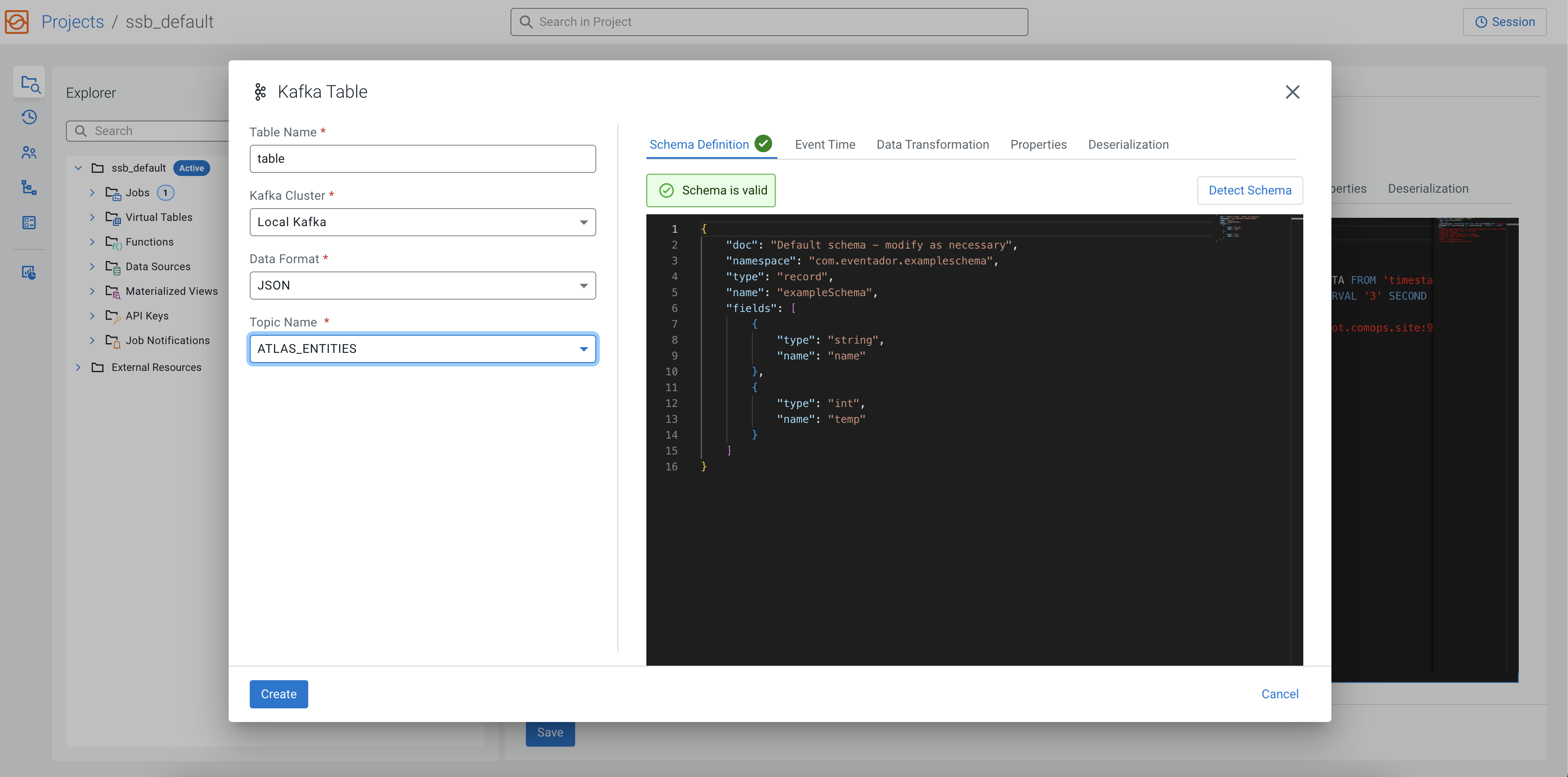 When using the Add Kafka table wizard on the Streaming SQL Console, you can configure the schema under the Schema tab.
