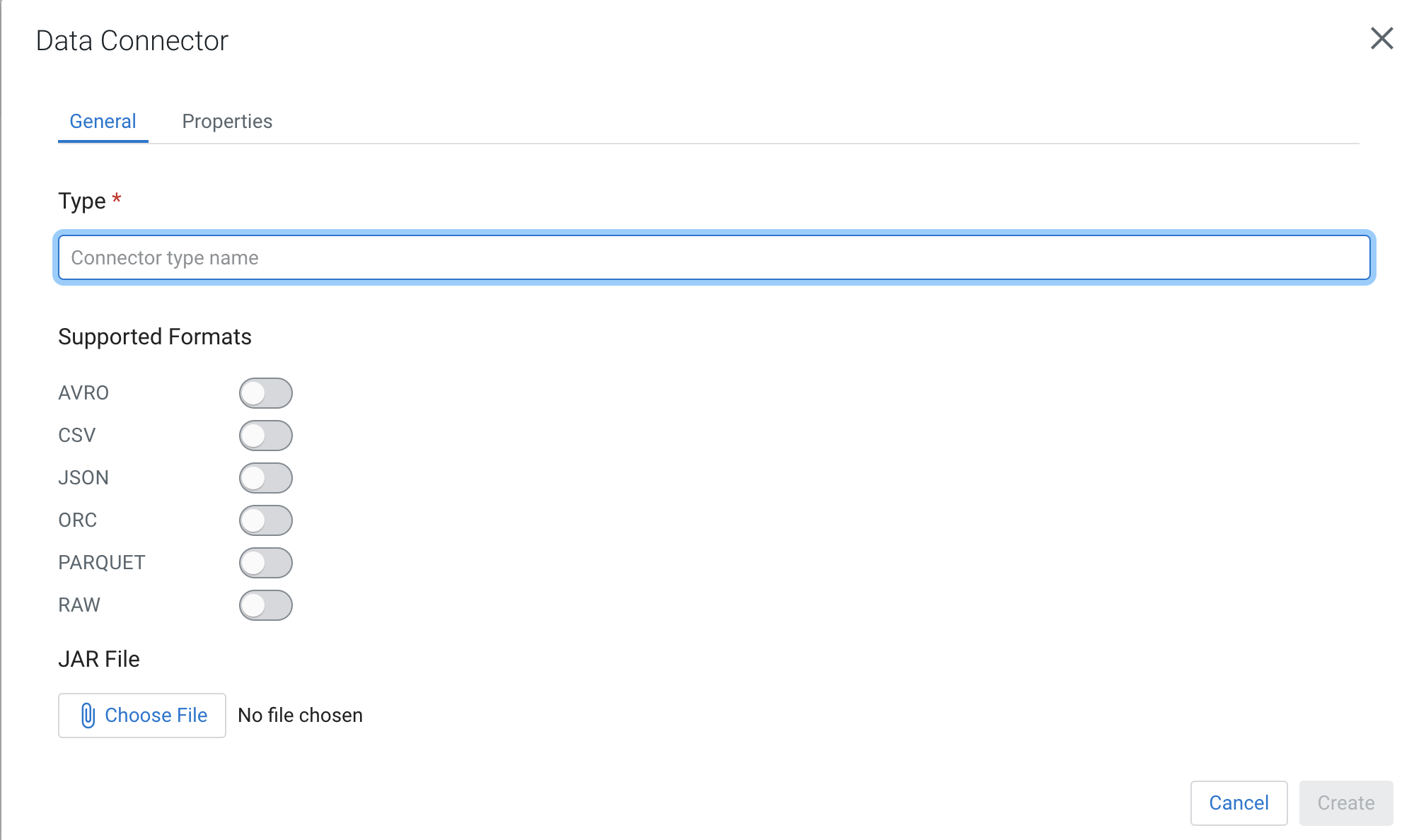 - Select a data format to be supported for the connector from the Supported Formats.