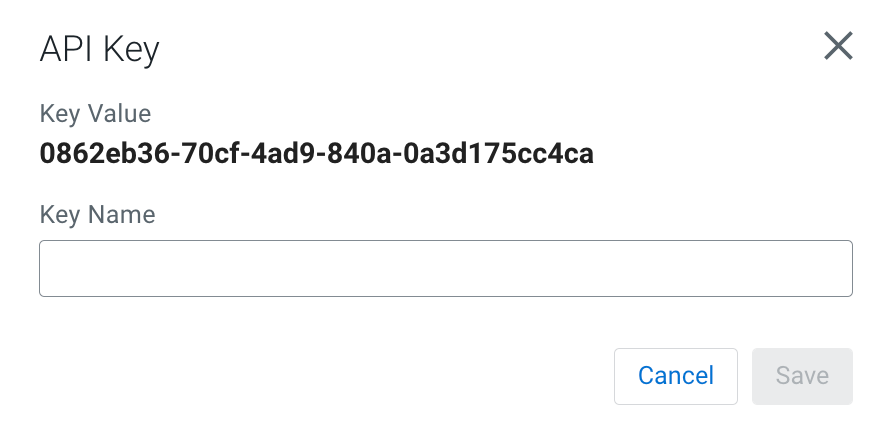 In case there are no API Keys, click Add API key, or click Materialized Views from the main menu. The add API key window appears. Provide a name for the API key, and click Save Changes.