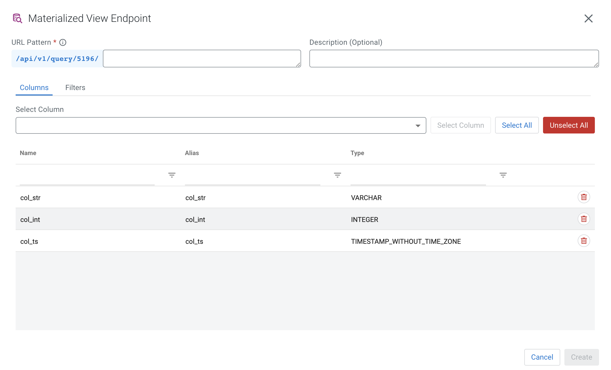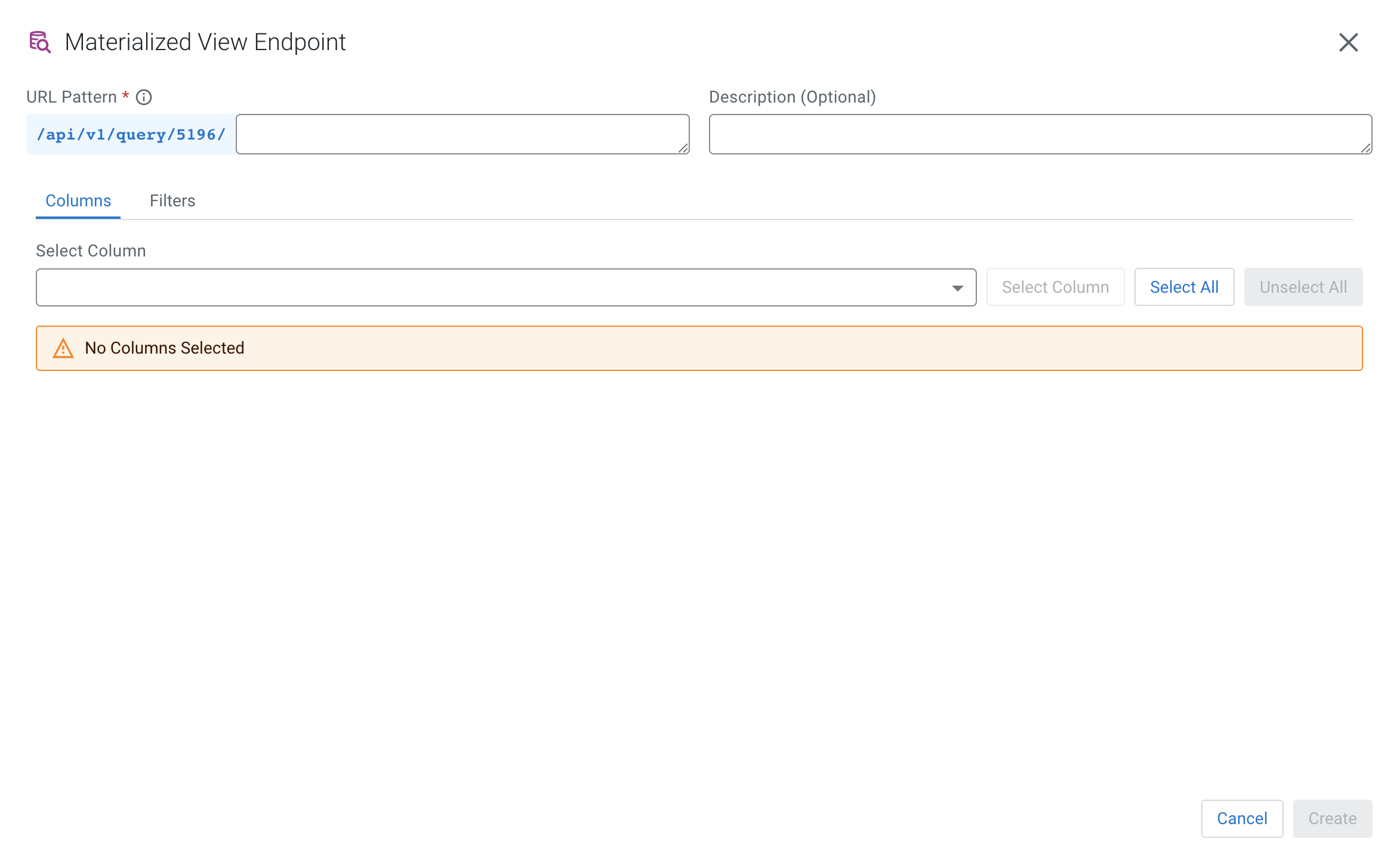 If this list is empty, then no SQL is specified in the SQL Editor or the SQL query is invalid. Select a key as a primary key for the Materialized View. All data will be updated by this key.