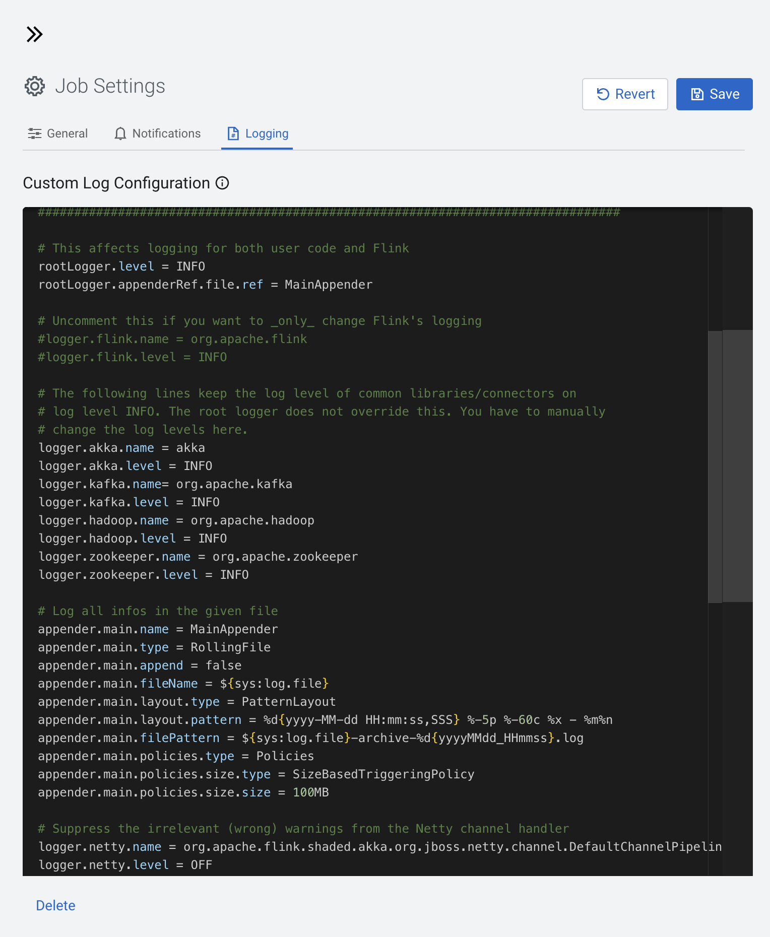The customization of the log configuration works differently whether it’s applied globally or at job level based on the job deployment mode.