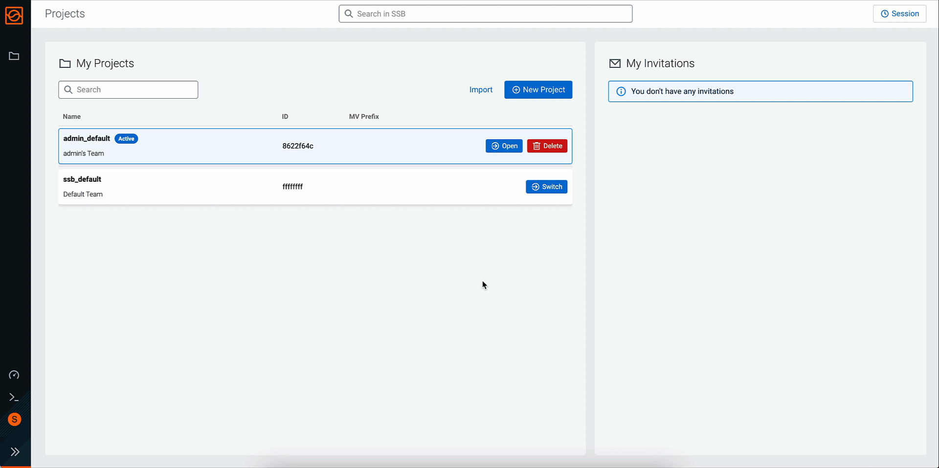 Import a project by clicking the Import button.