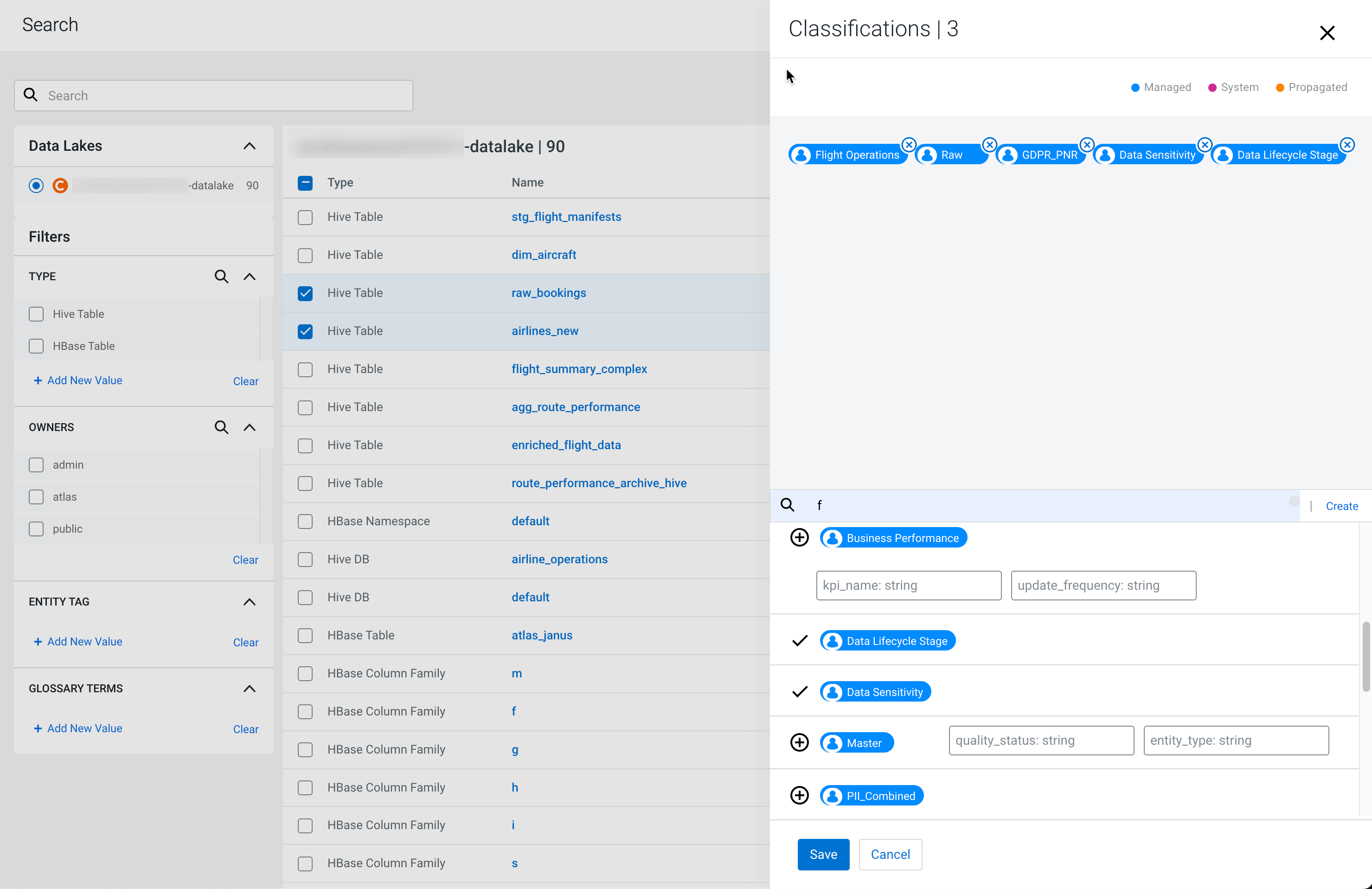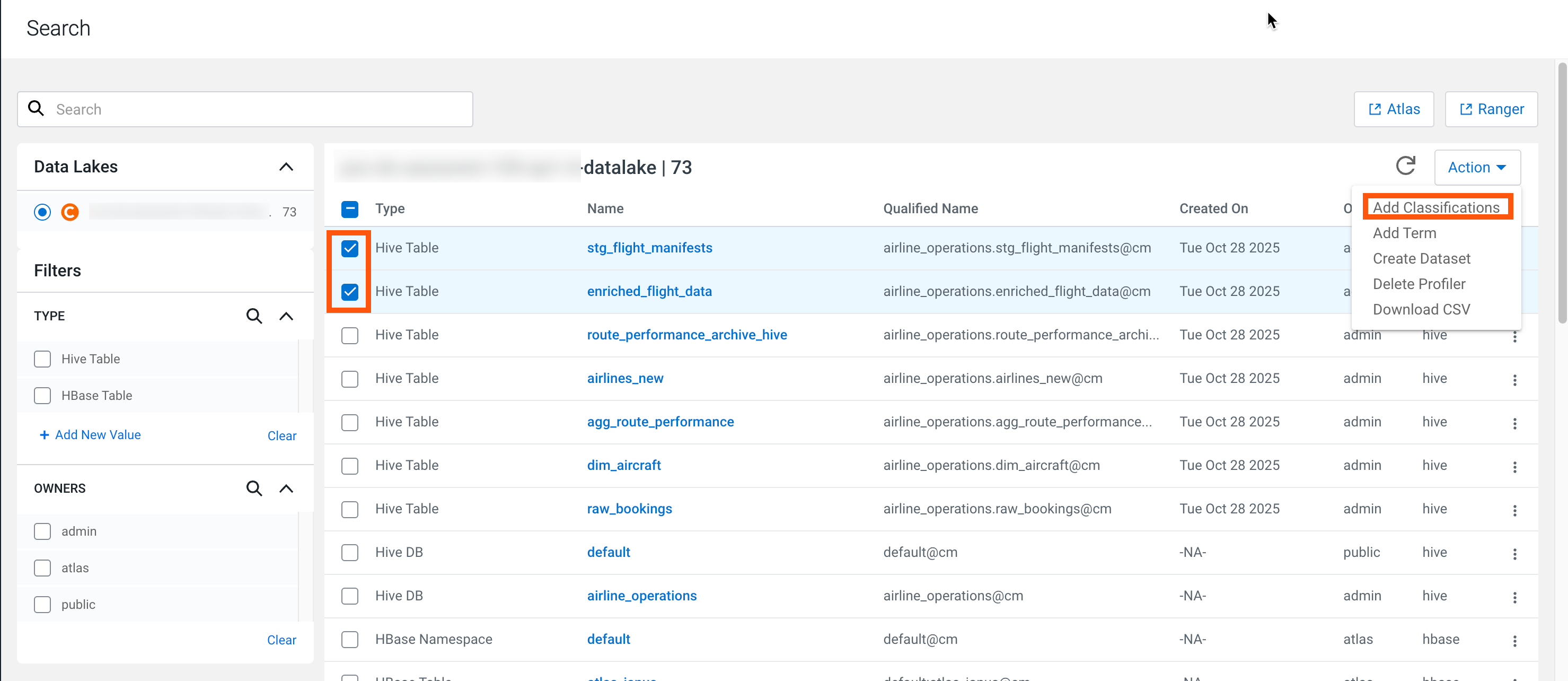 On the Search page, you can add tags (Atlas classifications) to multiple assets based on the asset type that you select based on the search result.