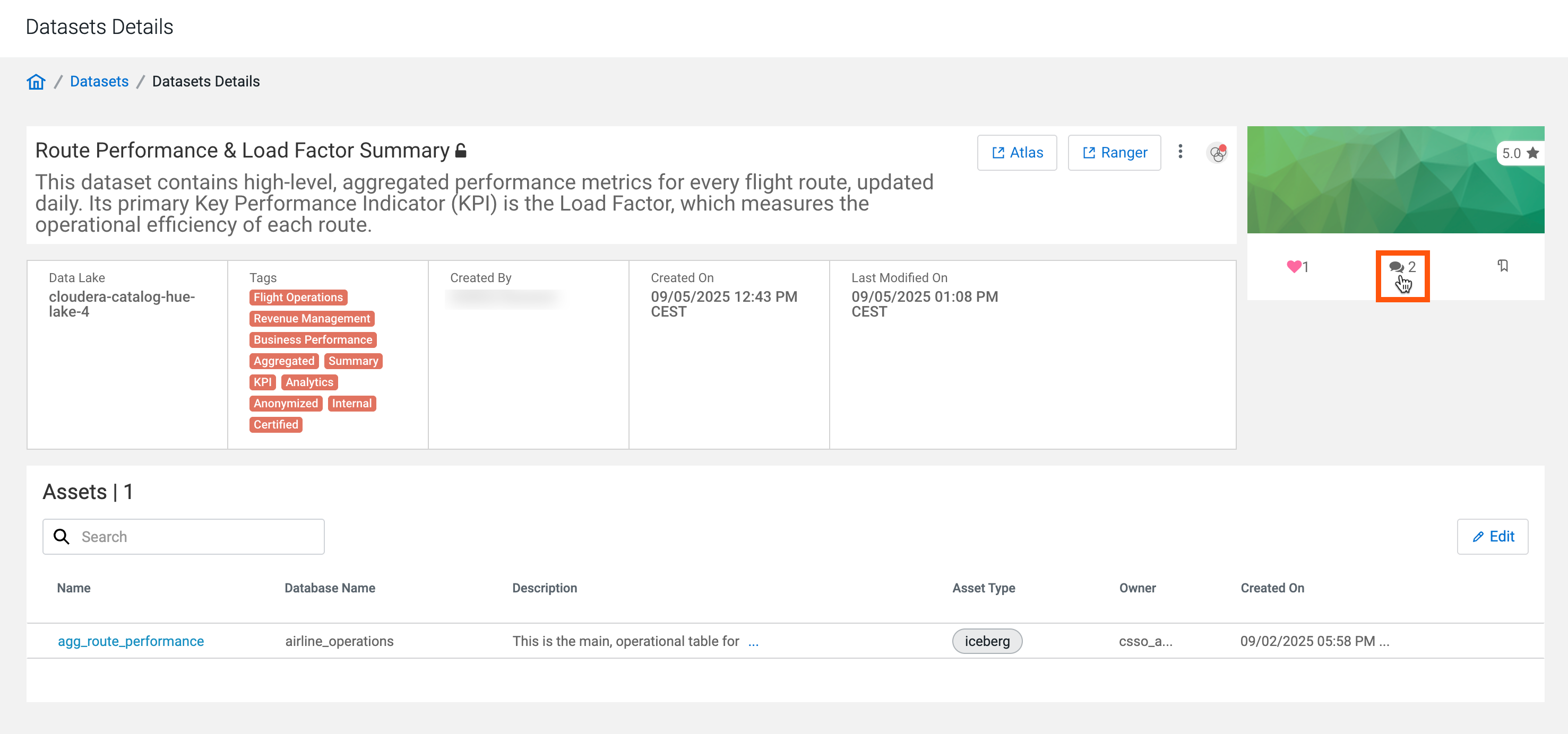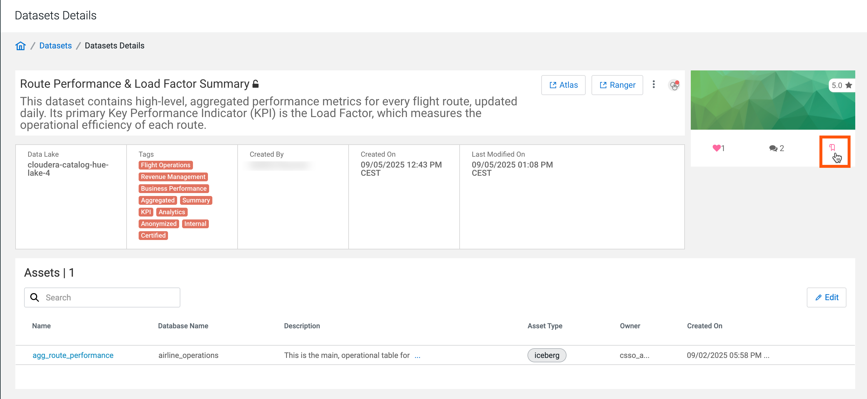 - The bookmark icon indicating if the dataset is bookmarked by the current user or not