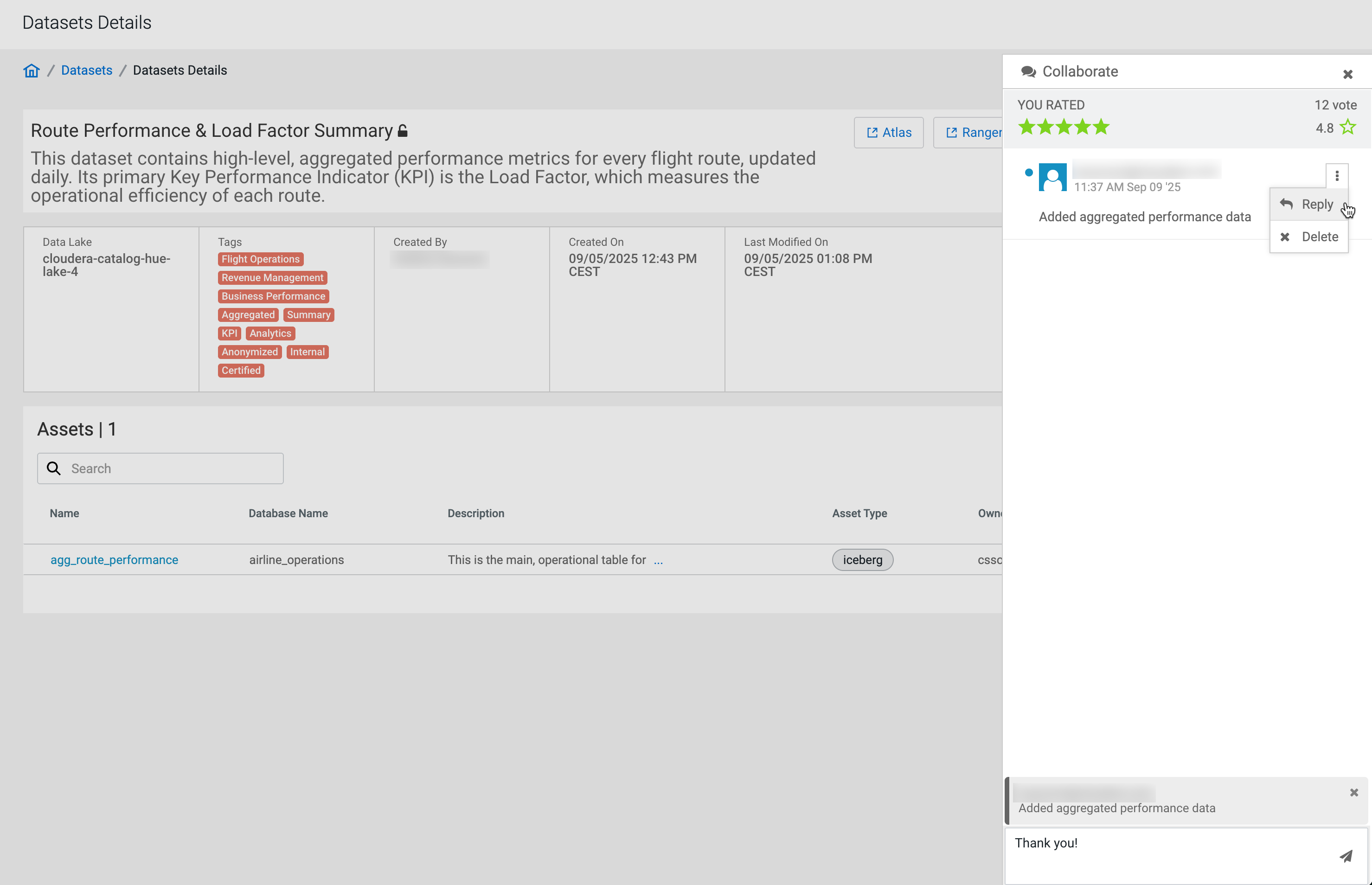 You can also rate the datasets on a scale of one to five. Click the
