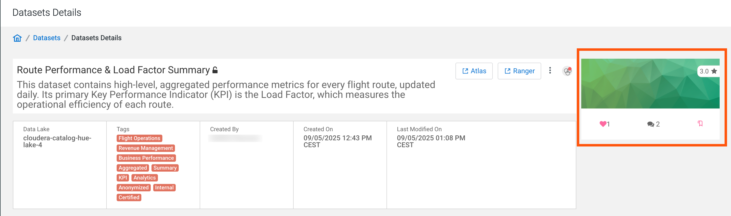 The rating on the Datasets page shows the average of the rating provided by various users. The Rating section also displays the number of votes given for this dataset.