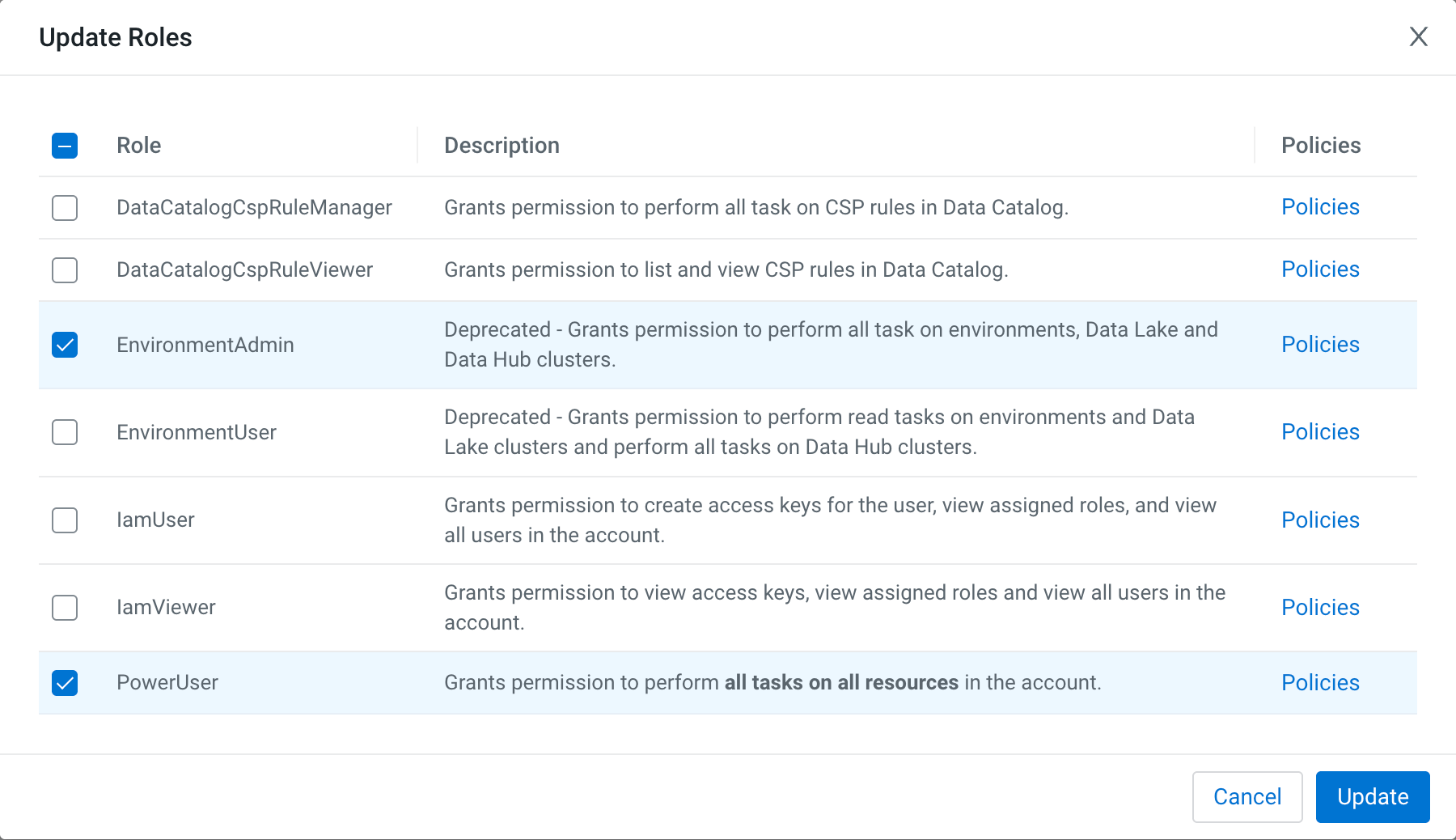 You must have either the EnvironmentAdmin or the EnvironmentUser role access to use Cloudera Data Catalog.