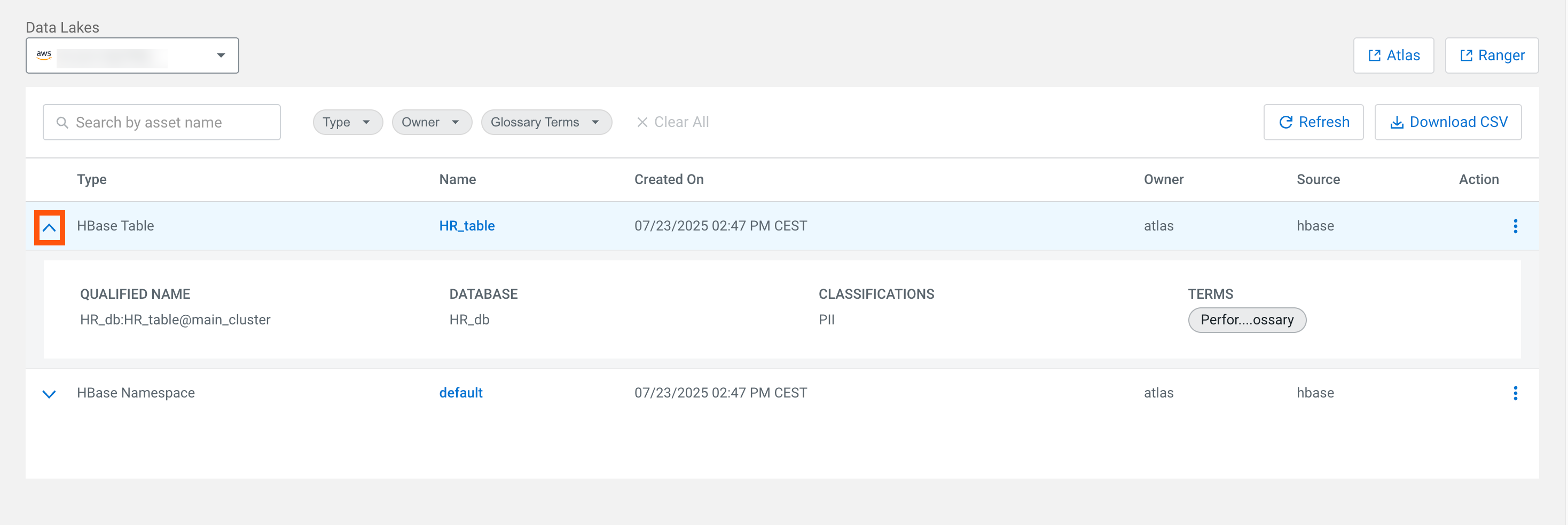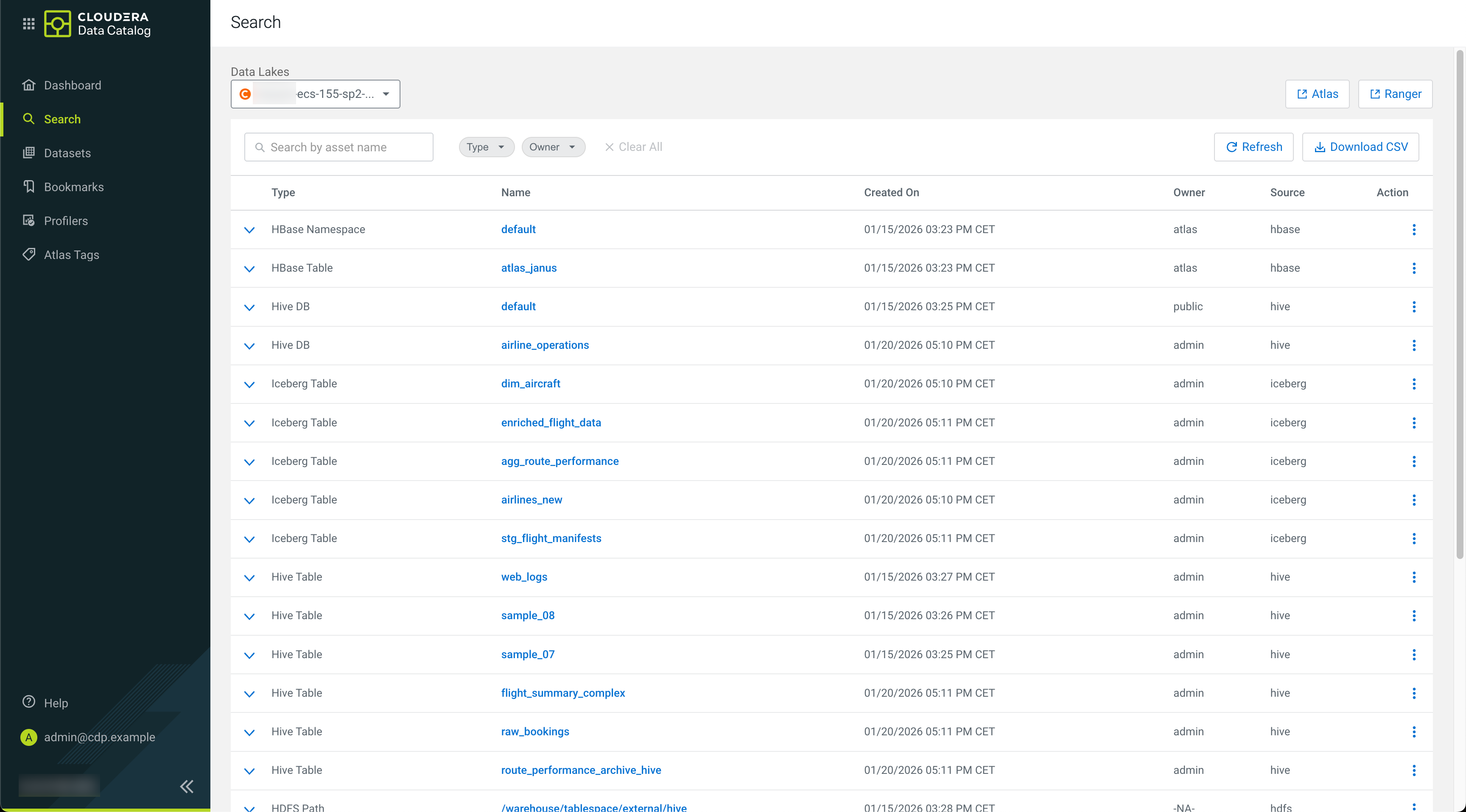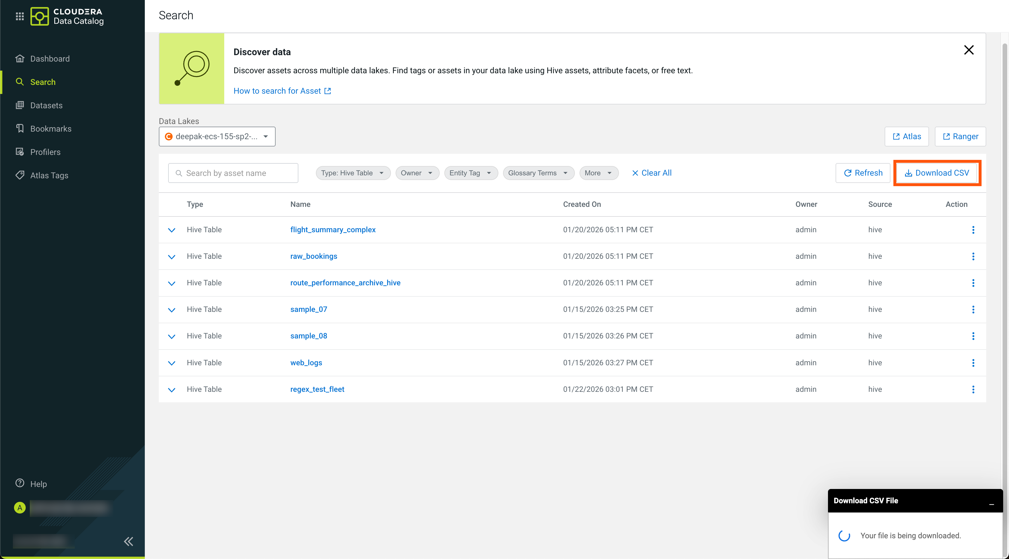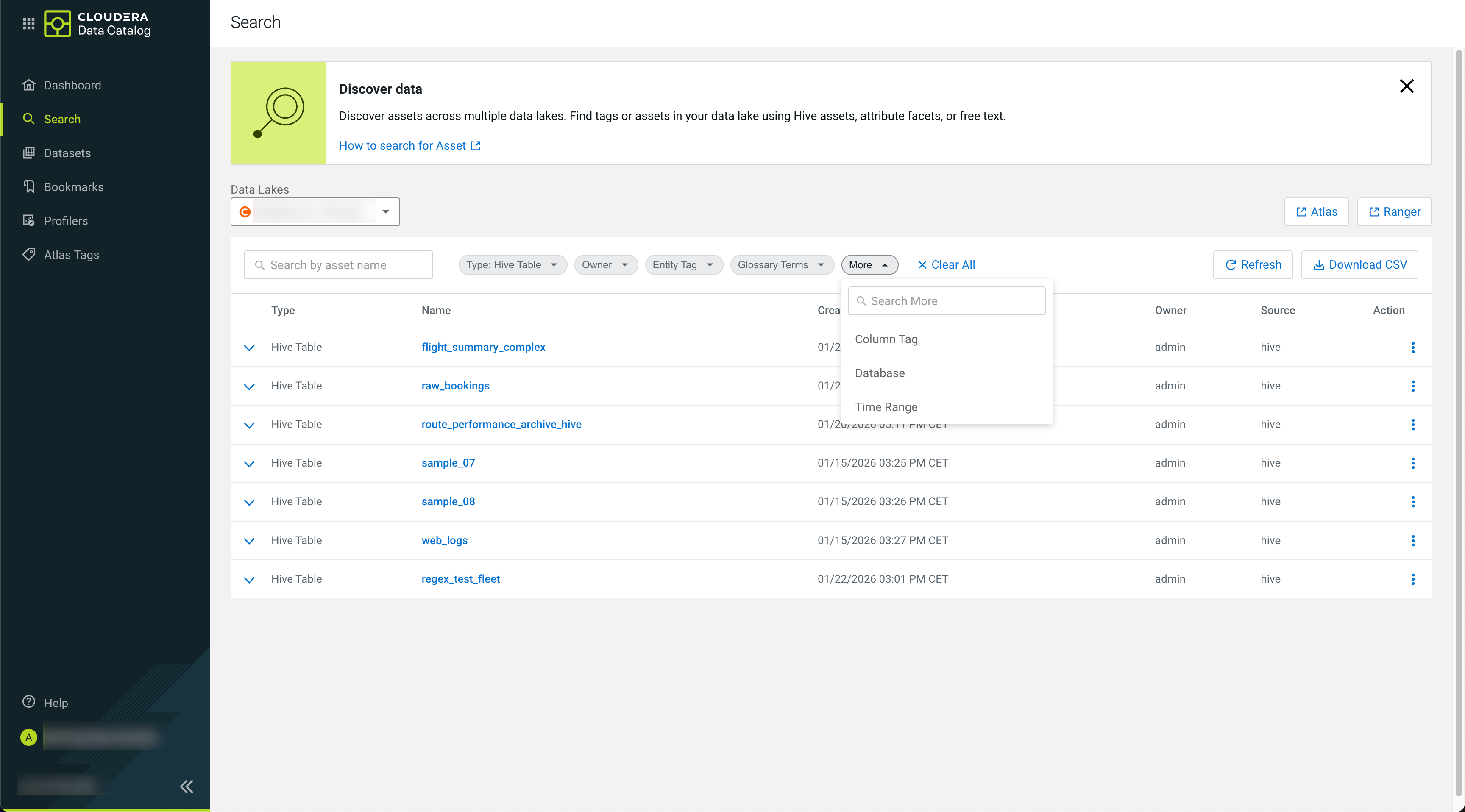 When you enter the search terms in Search, you are looking up names, types, descriptions, and other metadata collected by Cloudera Data Catalog. The search index includes metadata (not data) about your environment and cluster data assets and operations. You can make the search more powerful by associating your own information (business metadata) to the stored assets.