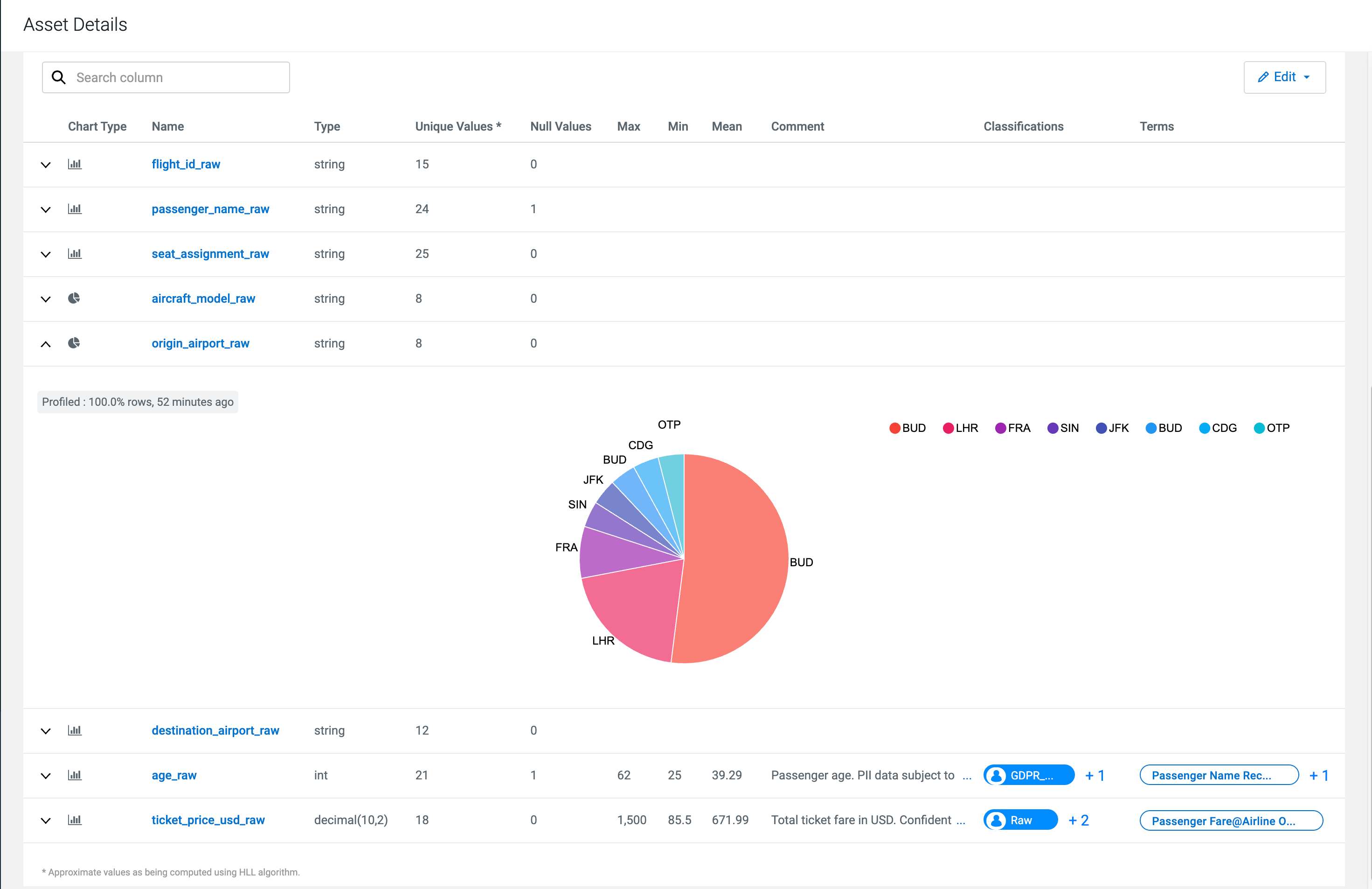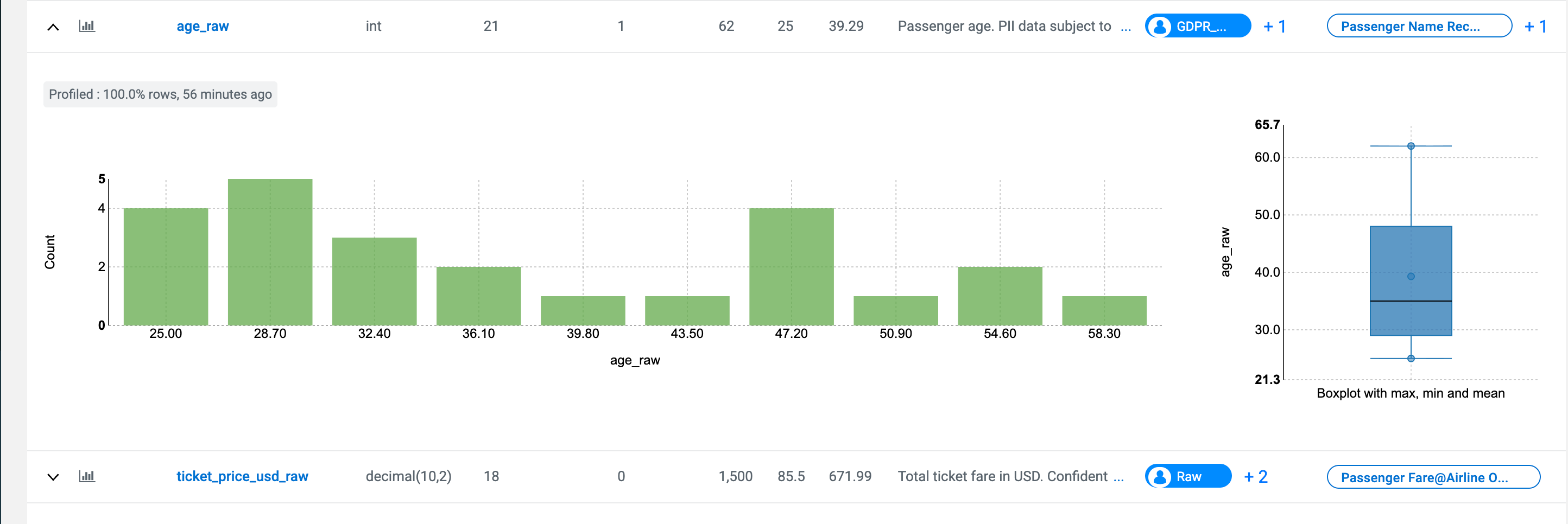 The profiler computes column univariate statistics that are displayed using an appropriate